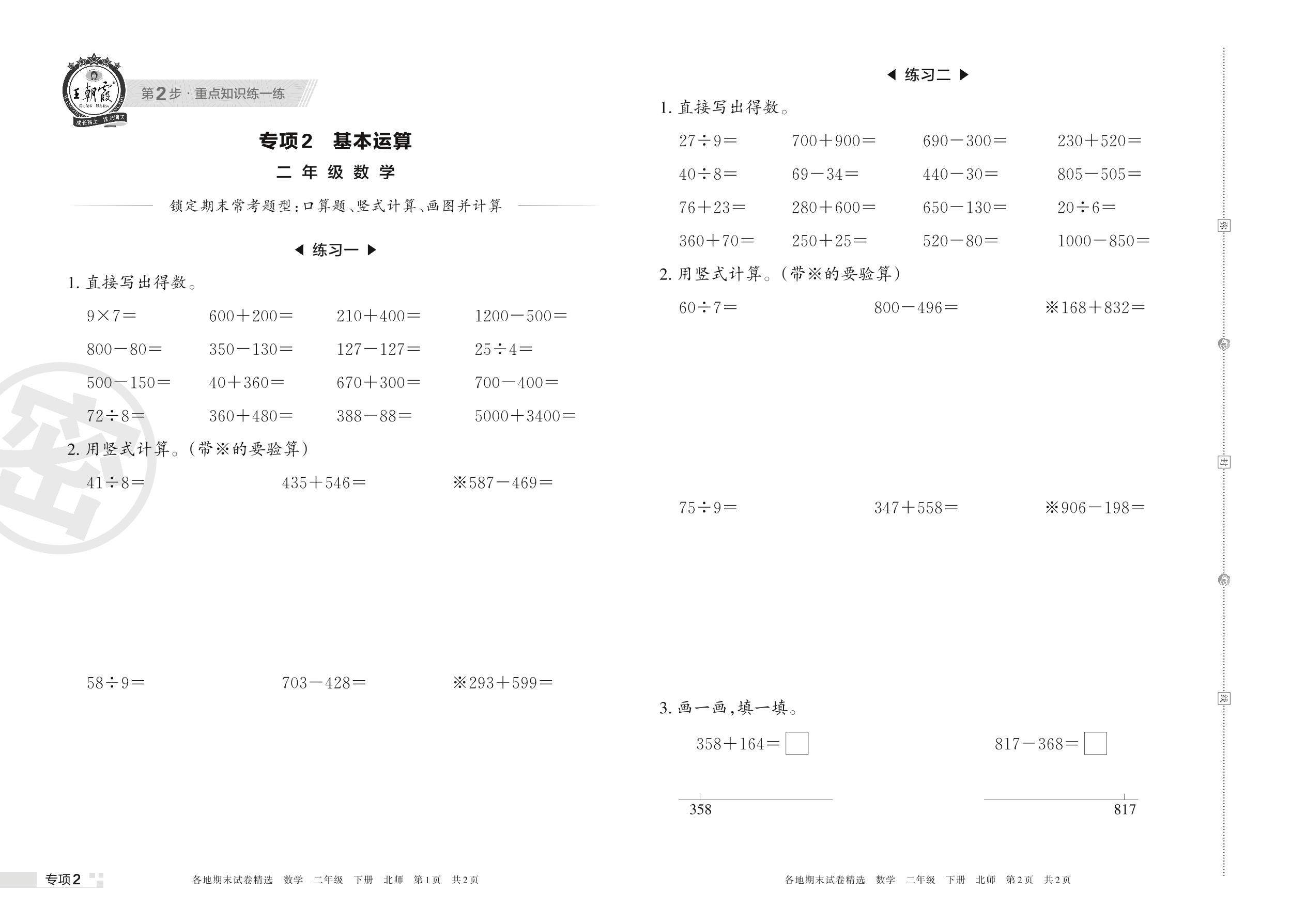 王朝霞期末专项卷——基本运算二年级下册数学(北师版)【2】
