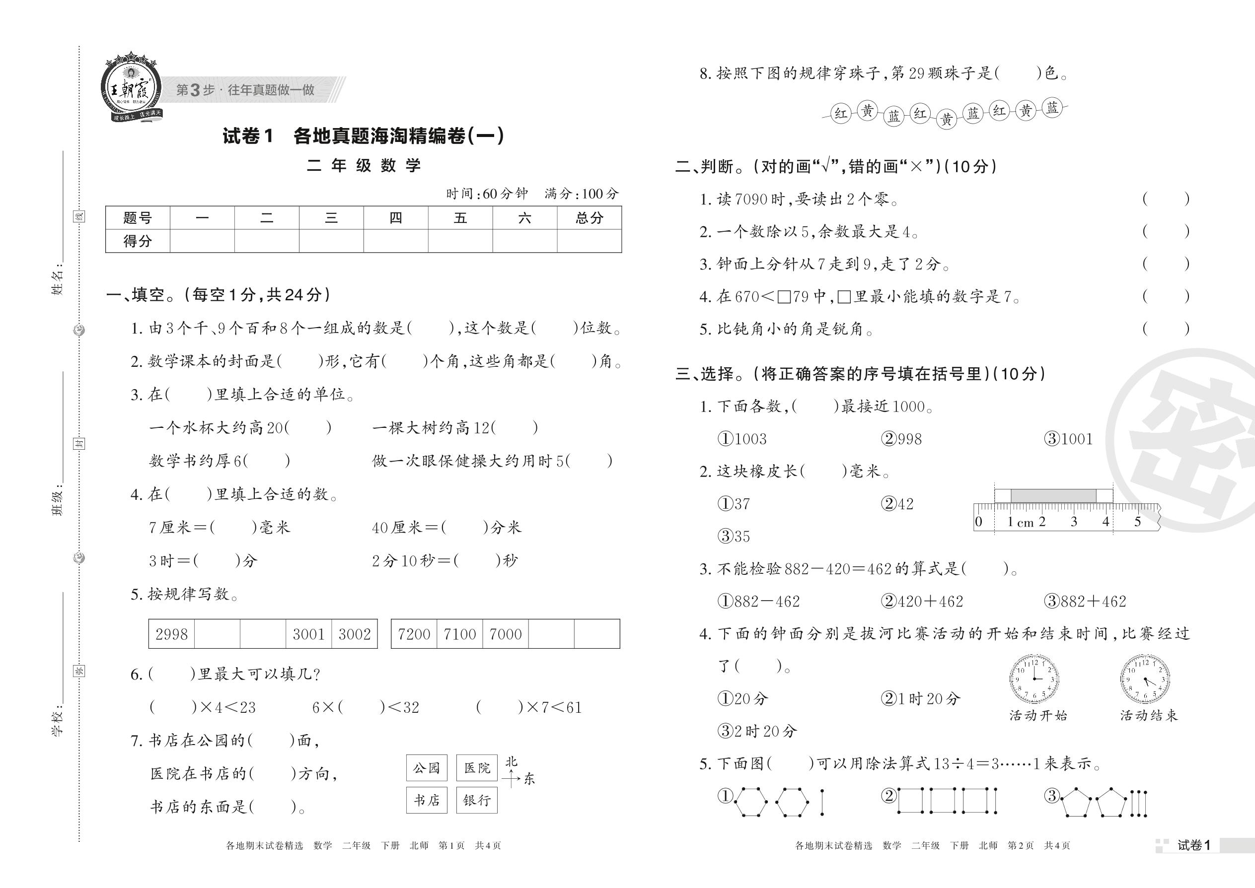 各地真题海淘精编卷(一)二年级下册数学(北师版)【1】