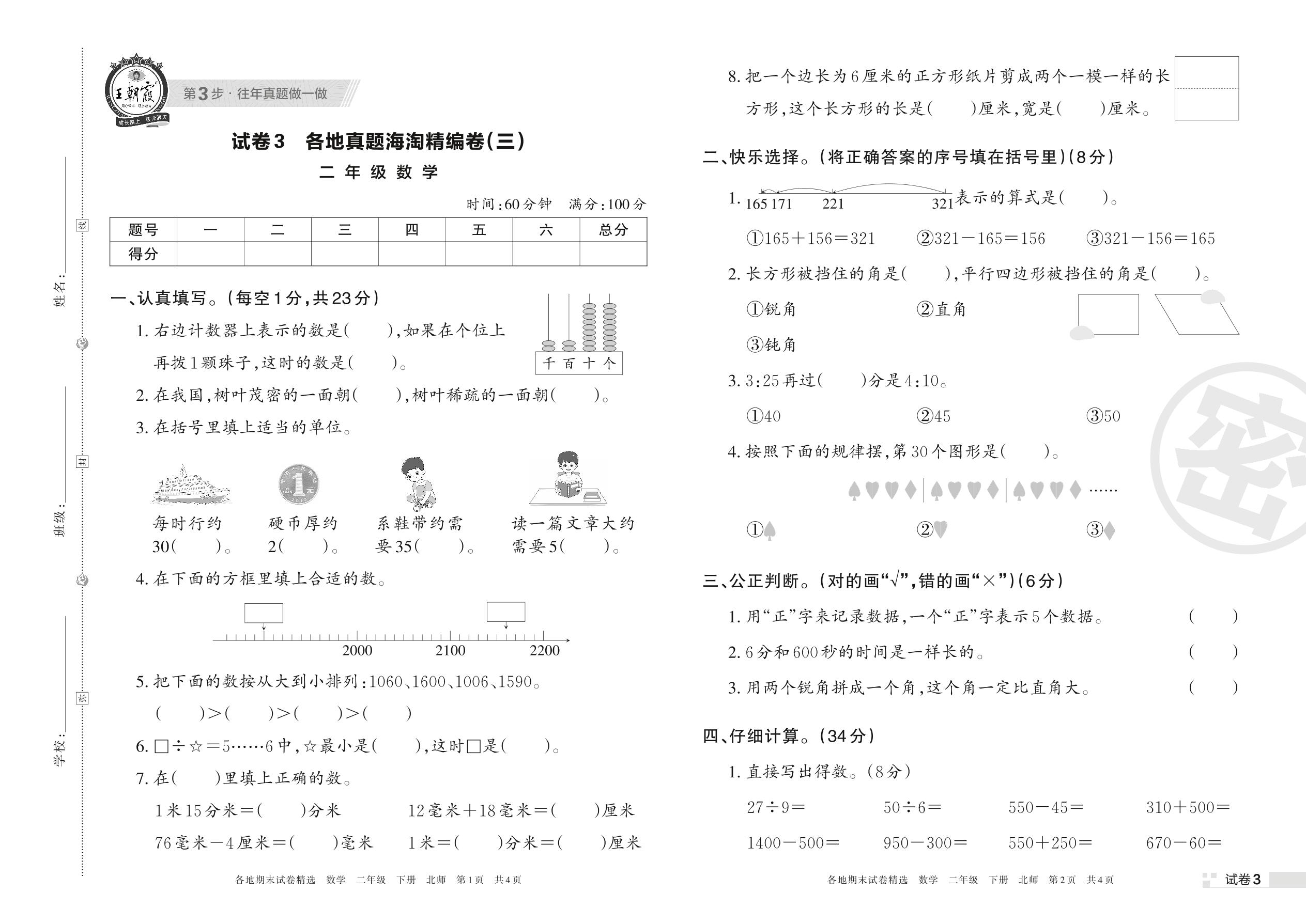 各地真题海淘精编卷(三)二年级下册数学(北师版)【3】