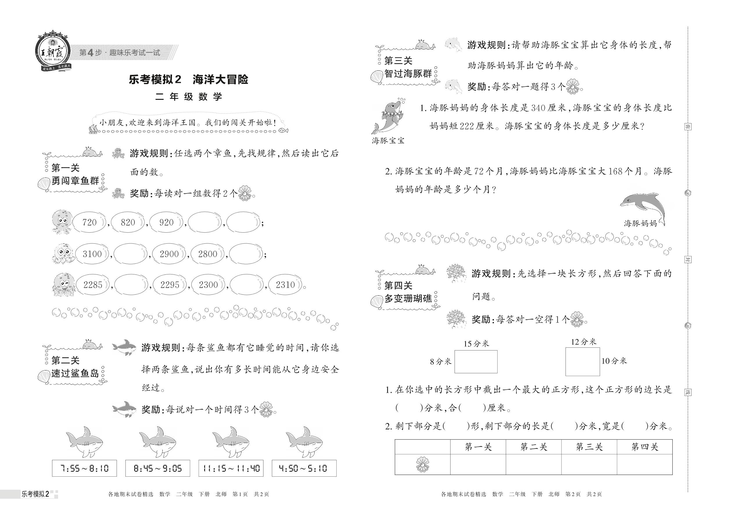 乐考模拟2 海洋大冒险二年级下册数学(北师版)