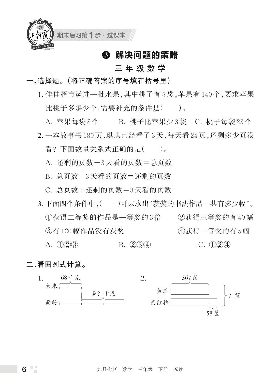 王朝霞期末过课本——3 解决问题的策略三年级下册数学(苏教版)_R220407153459602