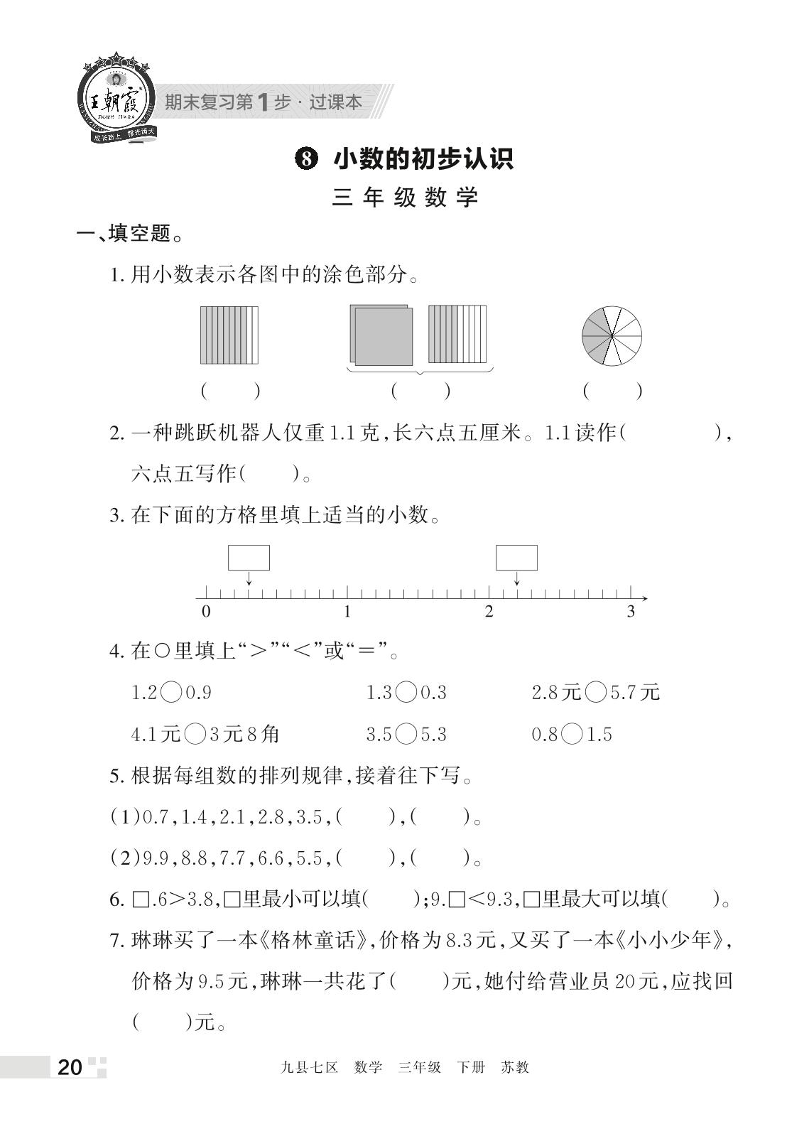 王朝霞期末过课本——8 小数的初步认识三年级下册数学(苏教版)_R220407153500775