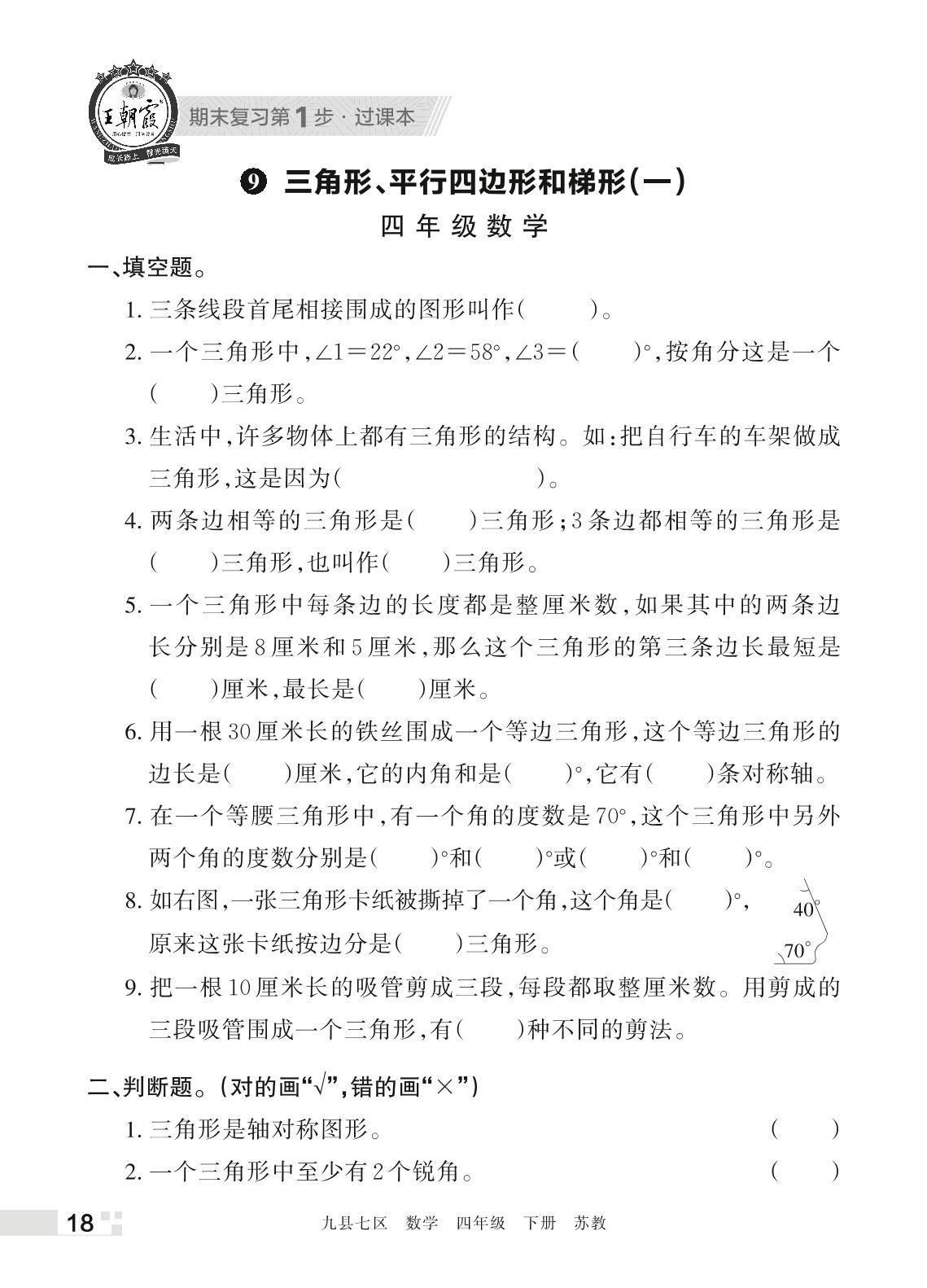 王朝霞期末过课本——9 三角形、平行四边形和梯形(一)四年级下册数学(苏教版)_R220407154332192
