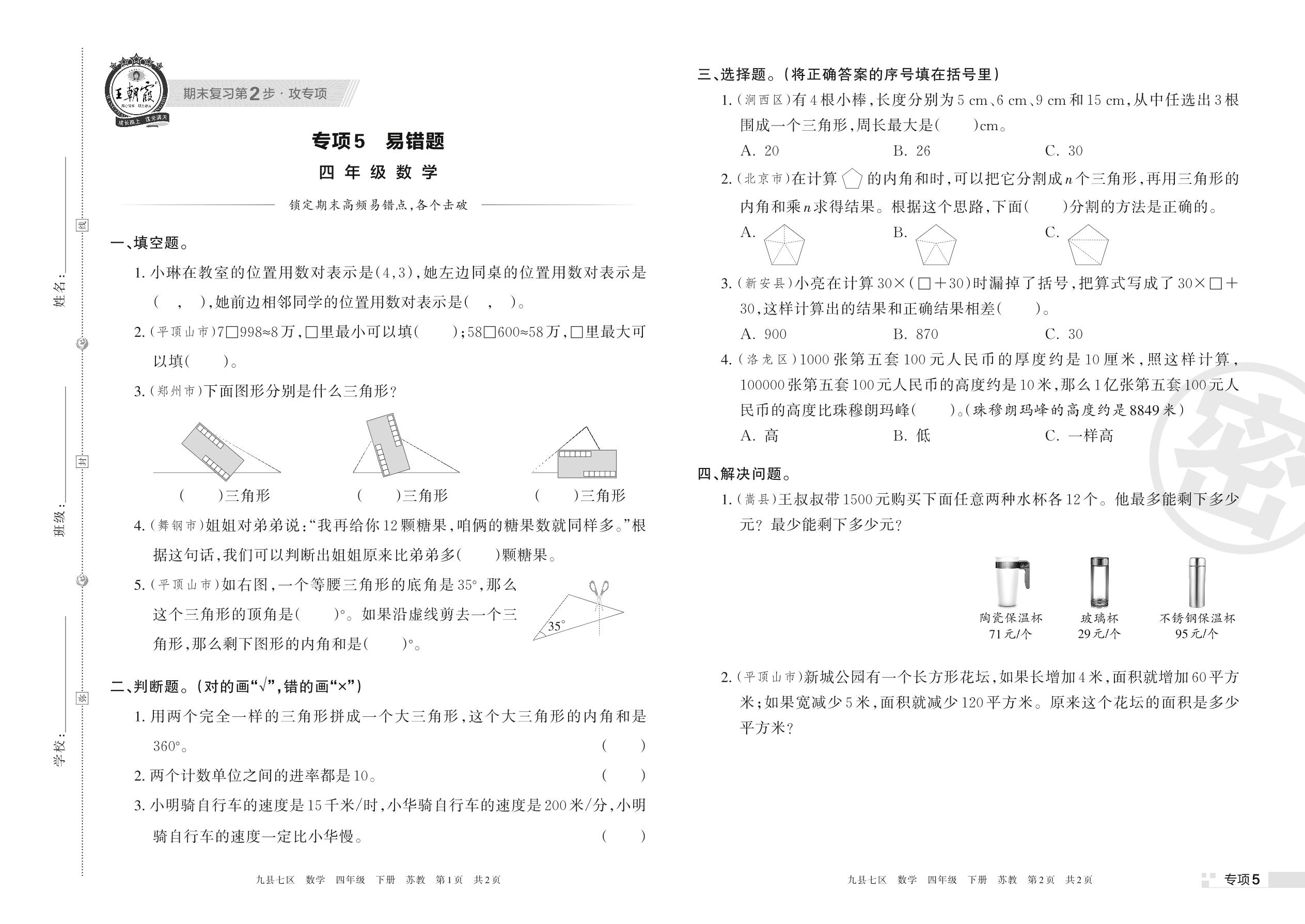 王朝霞期末专项卷——易错题四年级下册数学(苏教版)_R220407154333455【5】