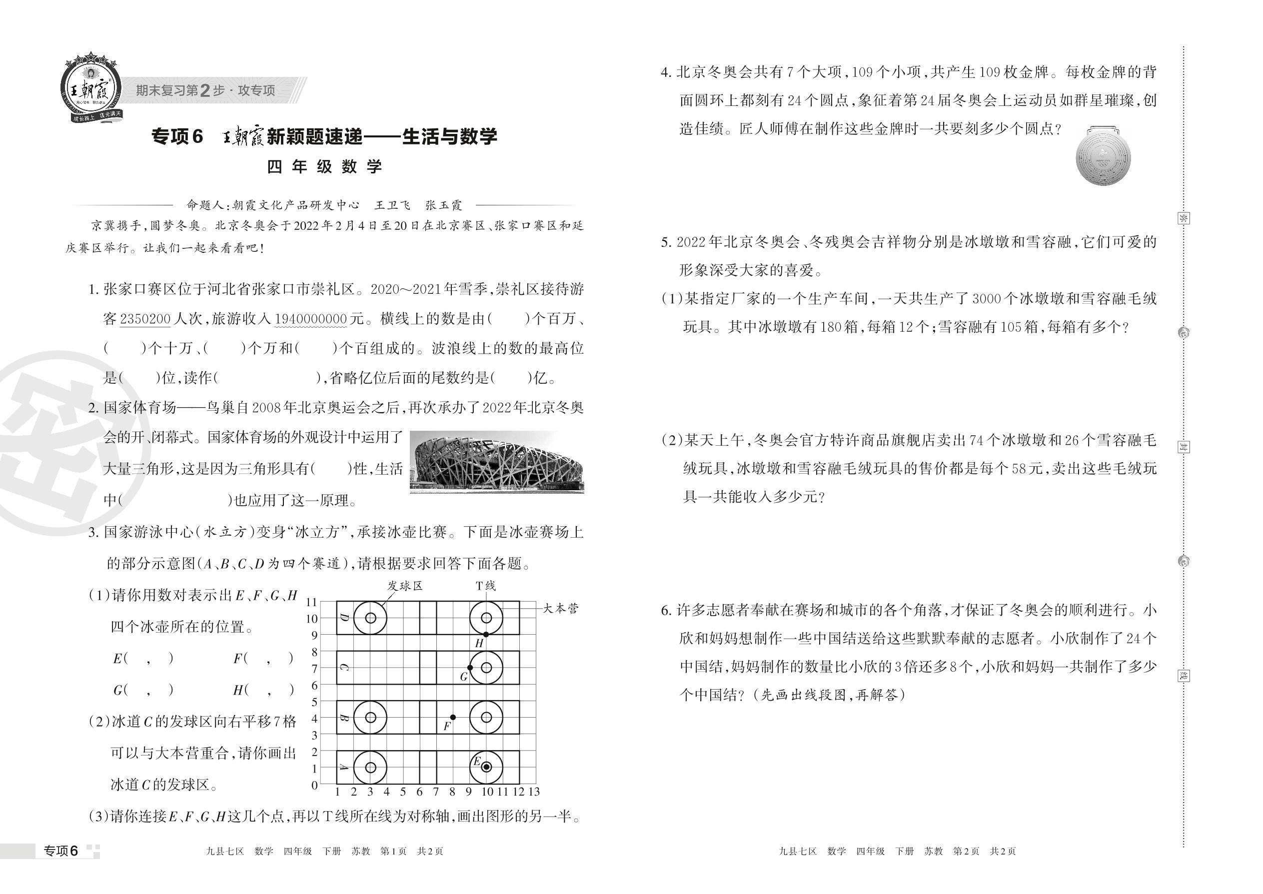 王朝霞期末专项卷——新颖题速递:生活与数学四年级下册数学(苏教版)_R220407154333728【6】