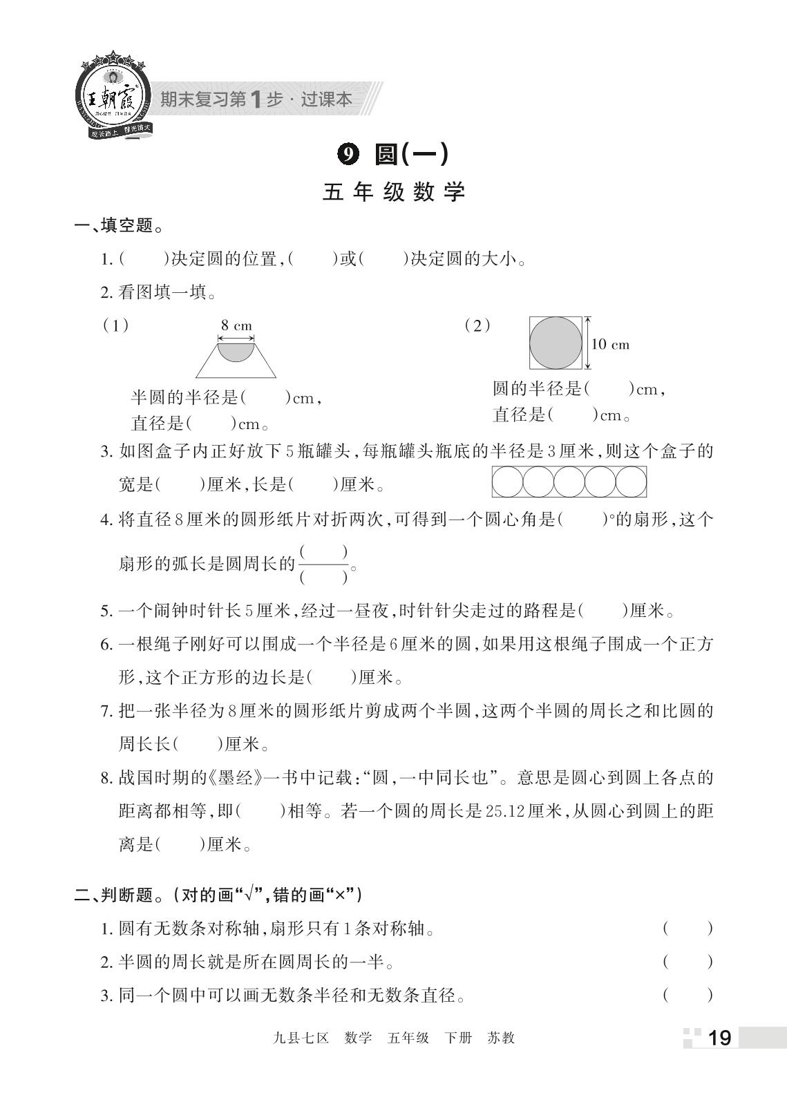 王朝霞期末过课本——9 圆(一)五年级下册数学(苏教版)_R220407155043517
