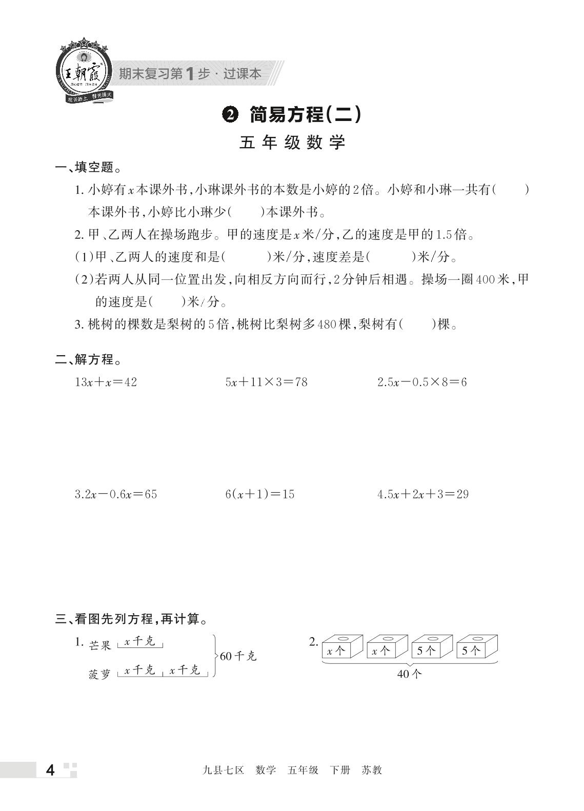 王朝霞期末过课本——2 简易方程(二)五年级下册数学(苏教版)_R220407155043984
