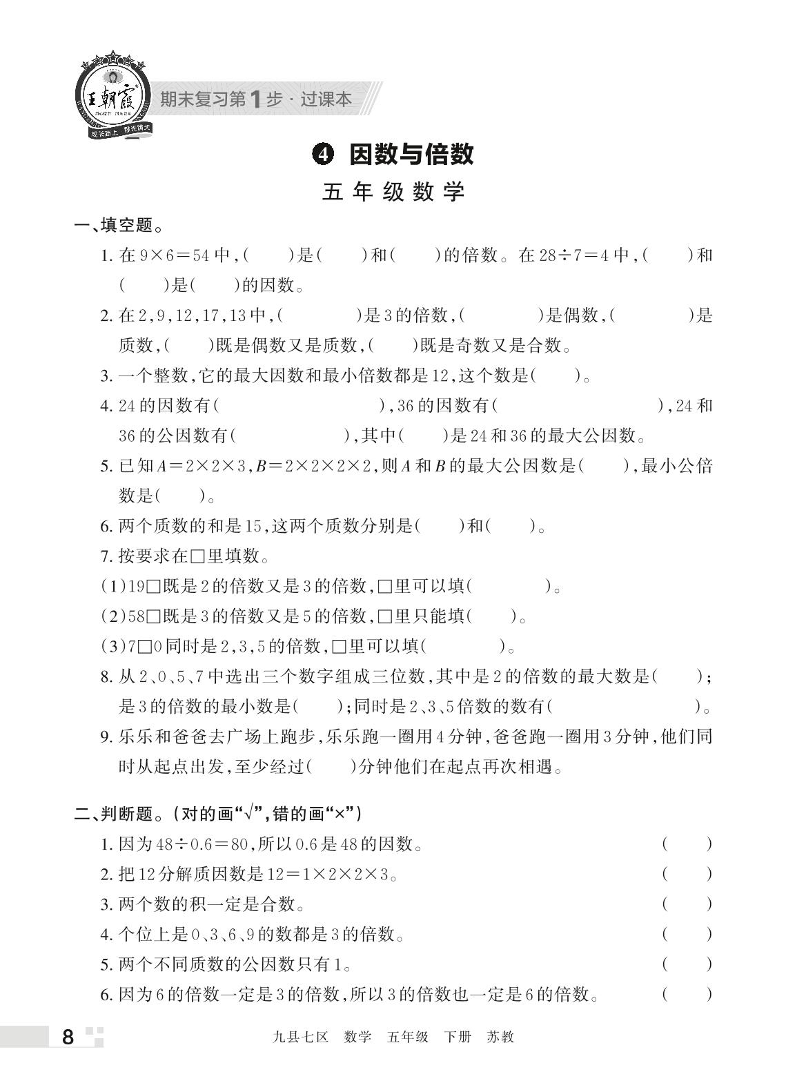 王朝霞期末过课本——4 因数与倍数五年级下册数学(苏教版)_R220407155044039