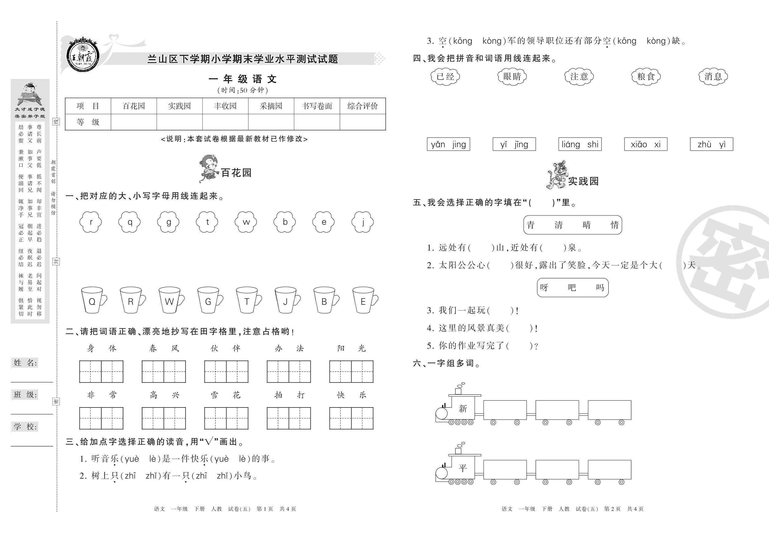 2015-2016学年第二学期临沂市兰山区一年级语文试卷(人教版)【5】