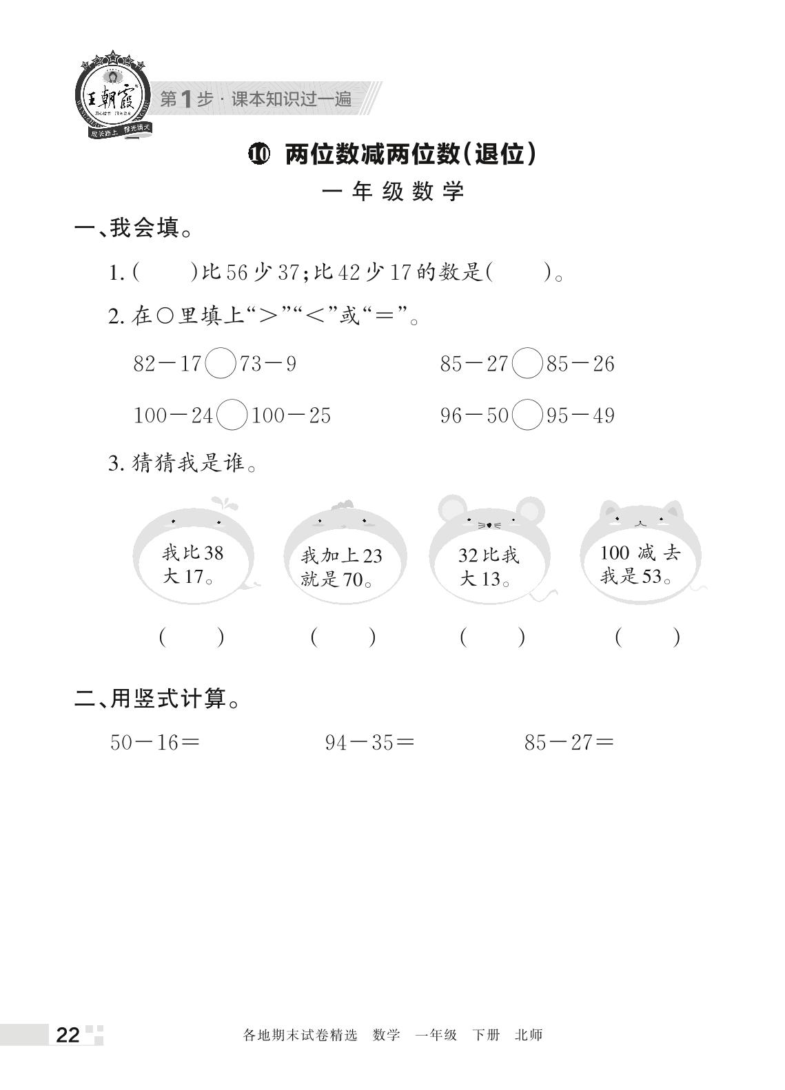 王朝霞期末过课本——10 两位数减两位数(退位)一年级下册数学(北师版)