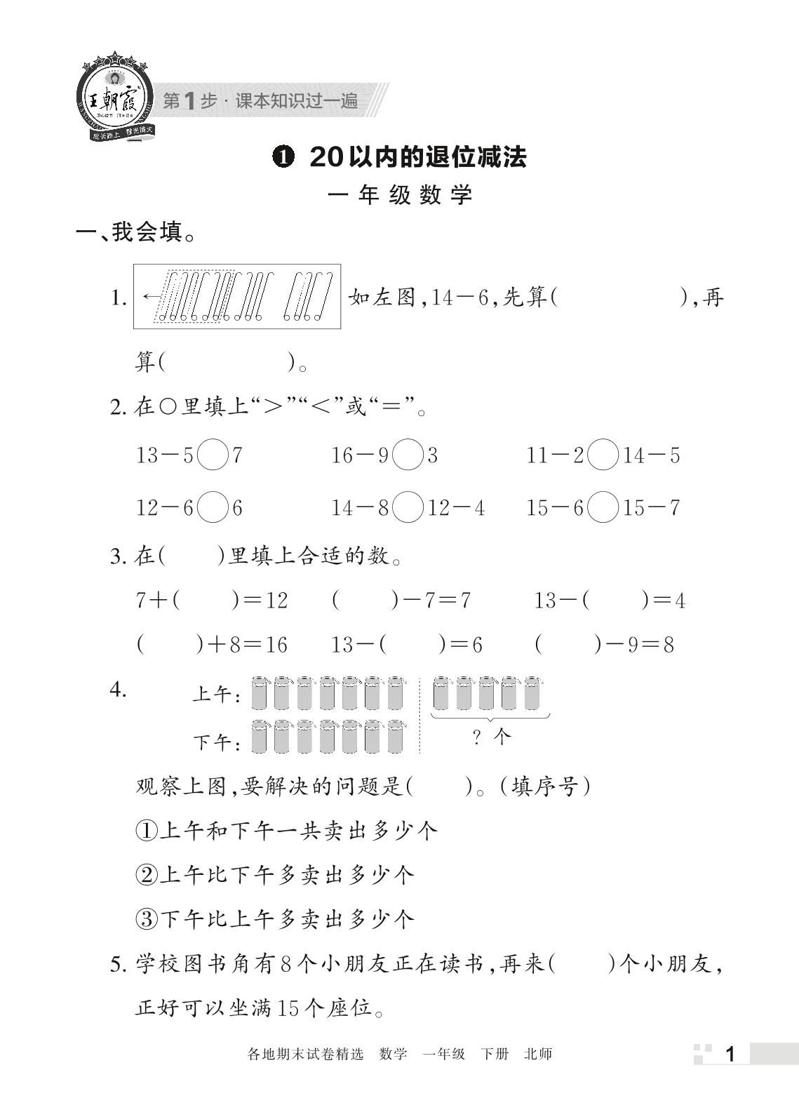 王朝霞期末过课本——1 20以内的退位减法一年级下册数学(北师版)