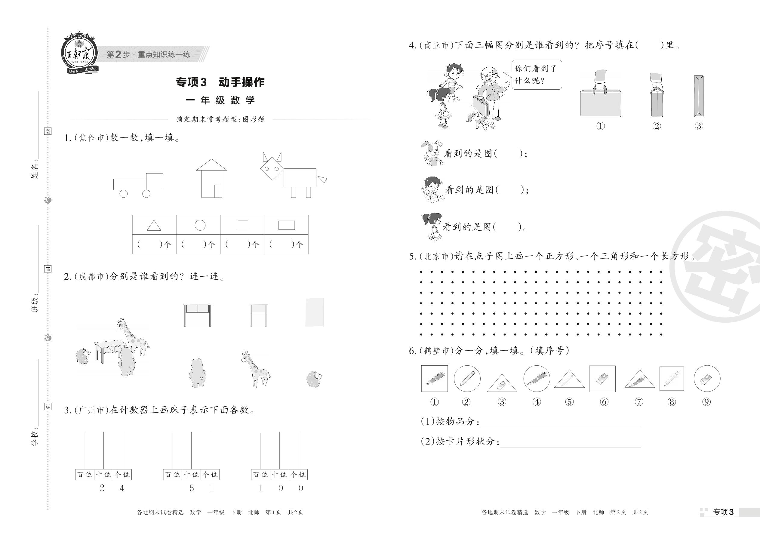 王朝霞期末专项卷——动手操作一年级下册数学(北师版)【3】