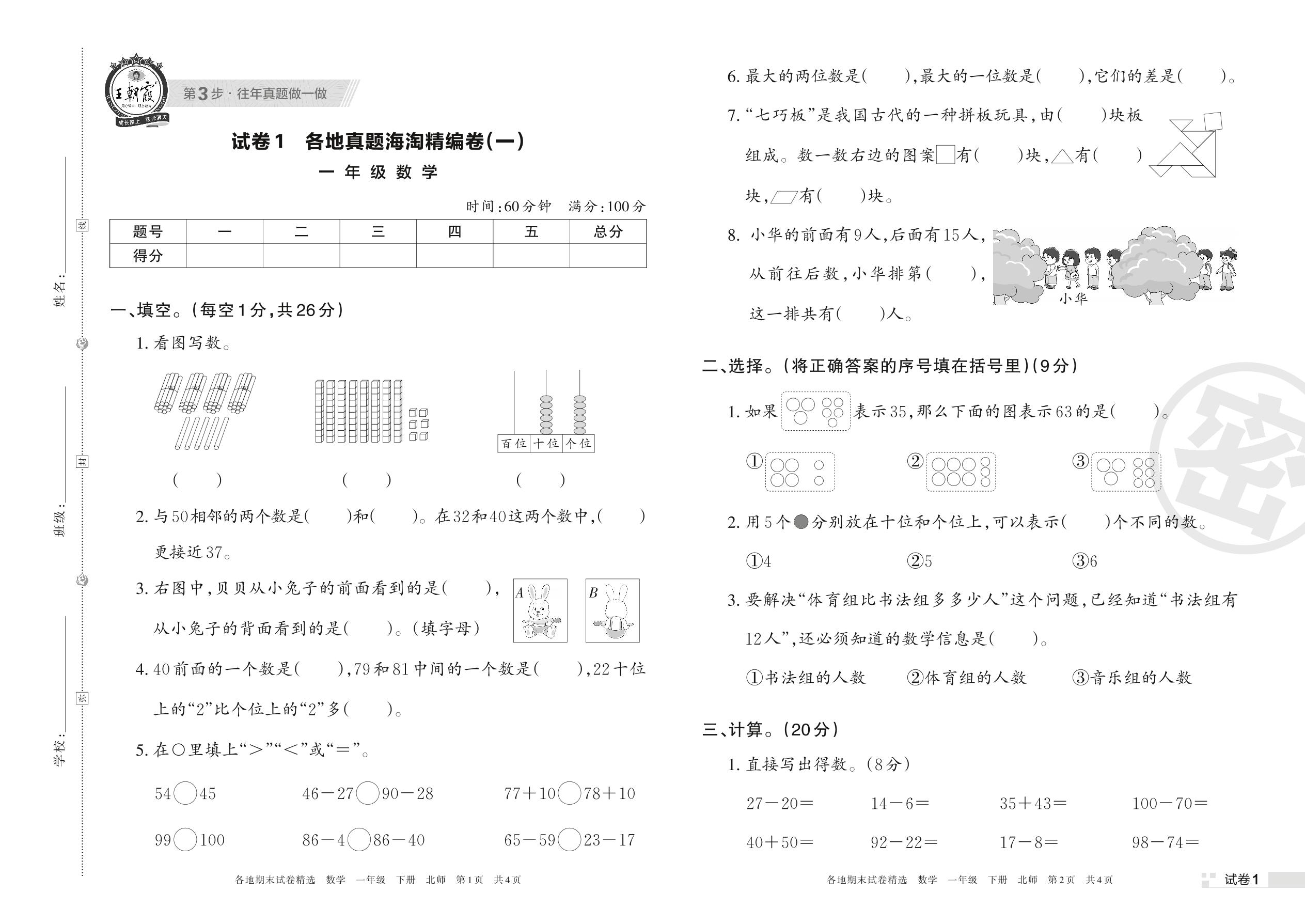 各地真题海淘精编卷(一)一年级下册数学(北师版)【1】