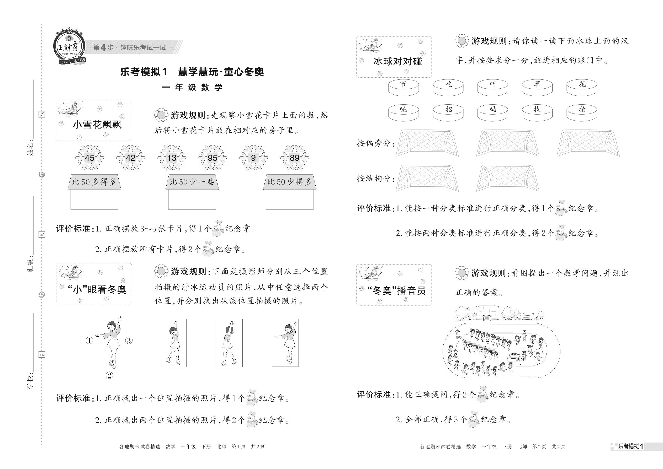 乐考模拟1 慧学慧玩·童心东奥一年级下册数学(北师版)