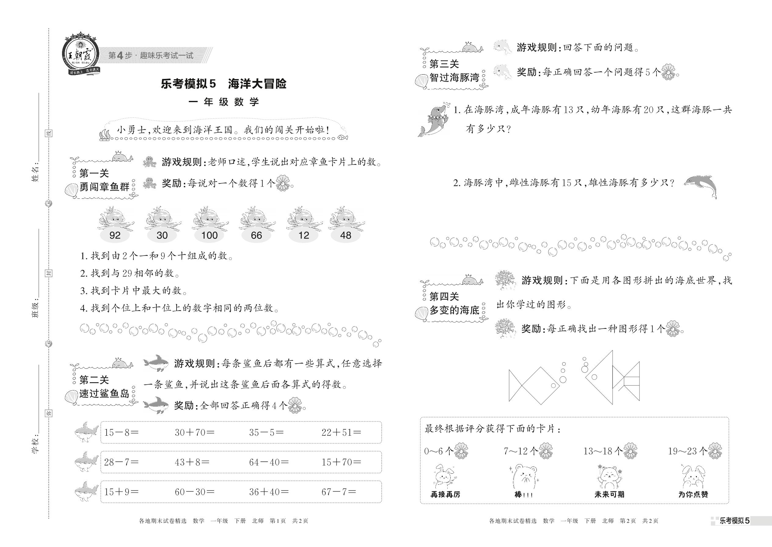 乐考模拟5 海洋大冒险一年级下册数学(北师版)