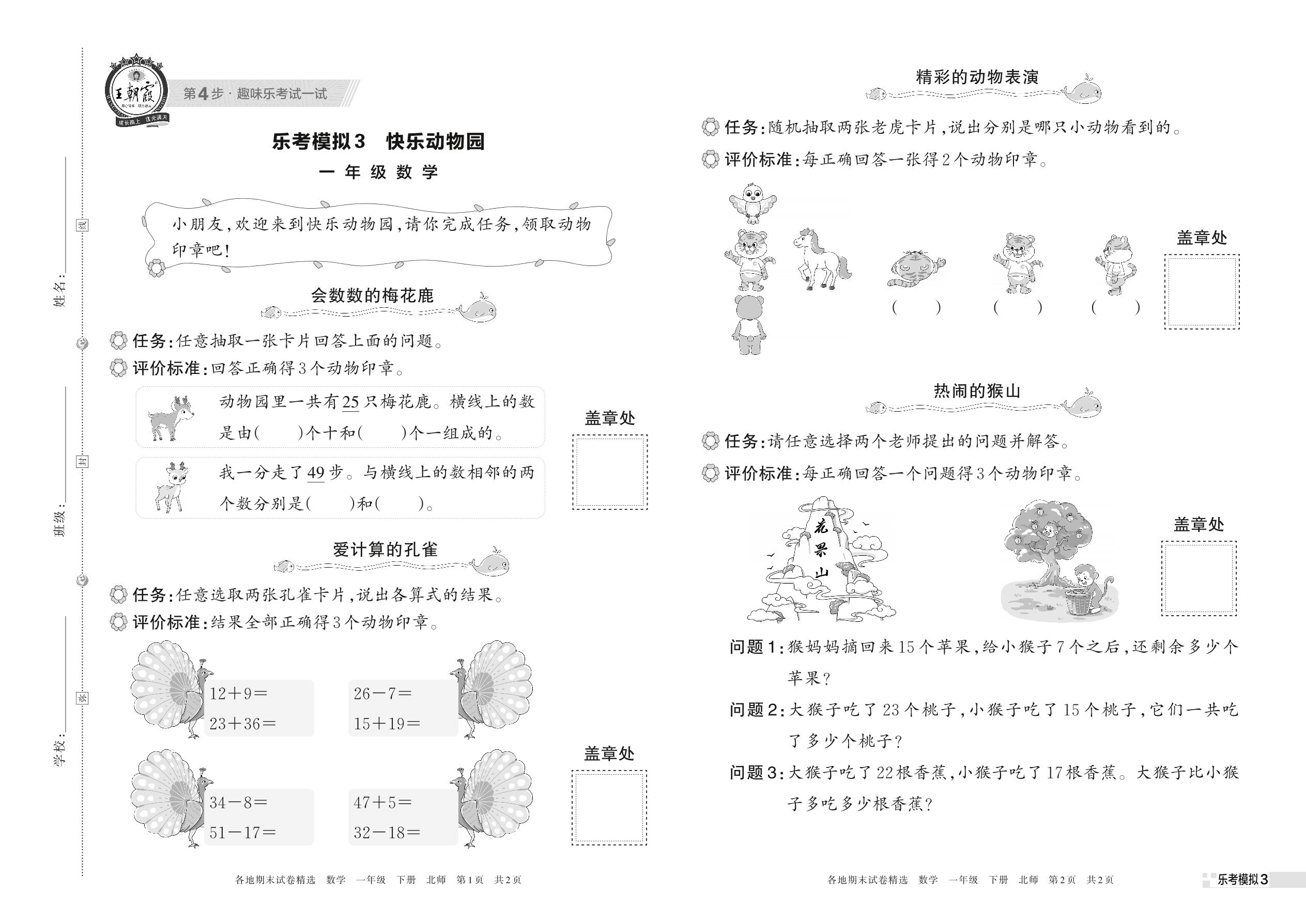 乐考模拟3 快乐动物园一年级下册数学(北师版)
