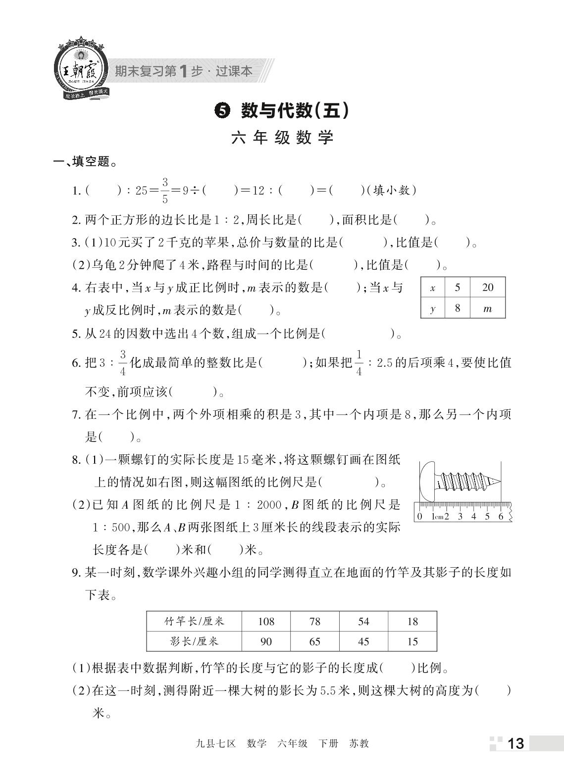 王朝霞期末过课本——5 数与代数(五)六年级下册数学(苏教版)_R220407155718910
