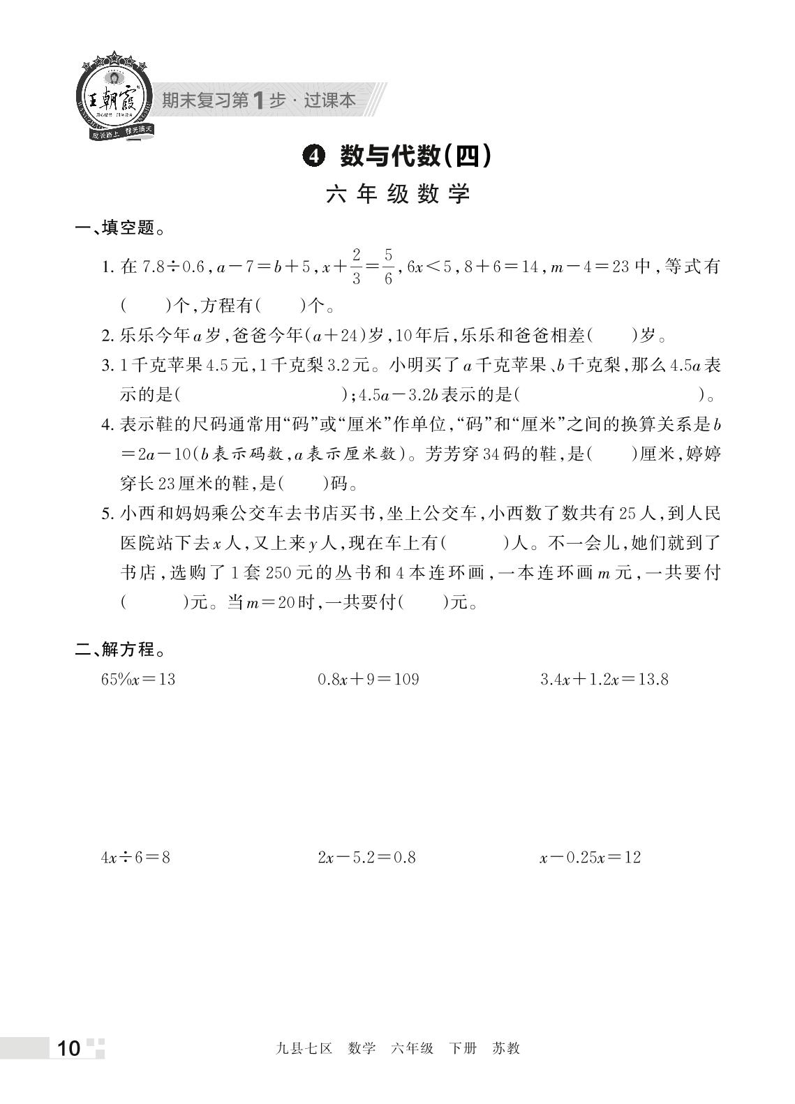 王朝霞期末过课本——4 数与代数(四)六年级下册数学(苏教版)_R220407155718745