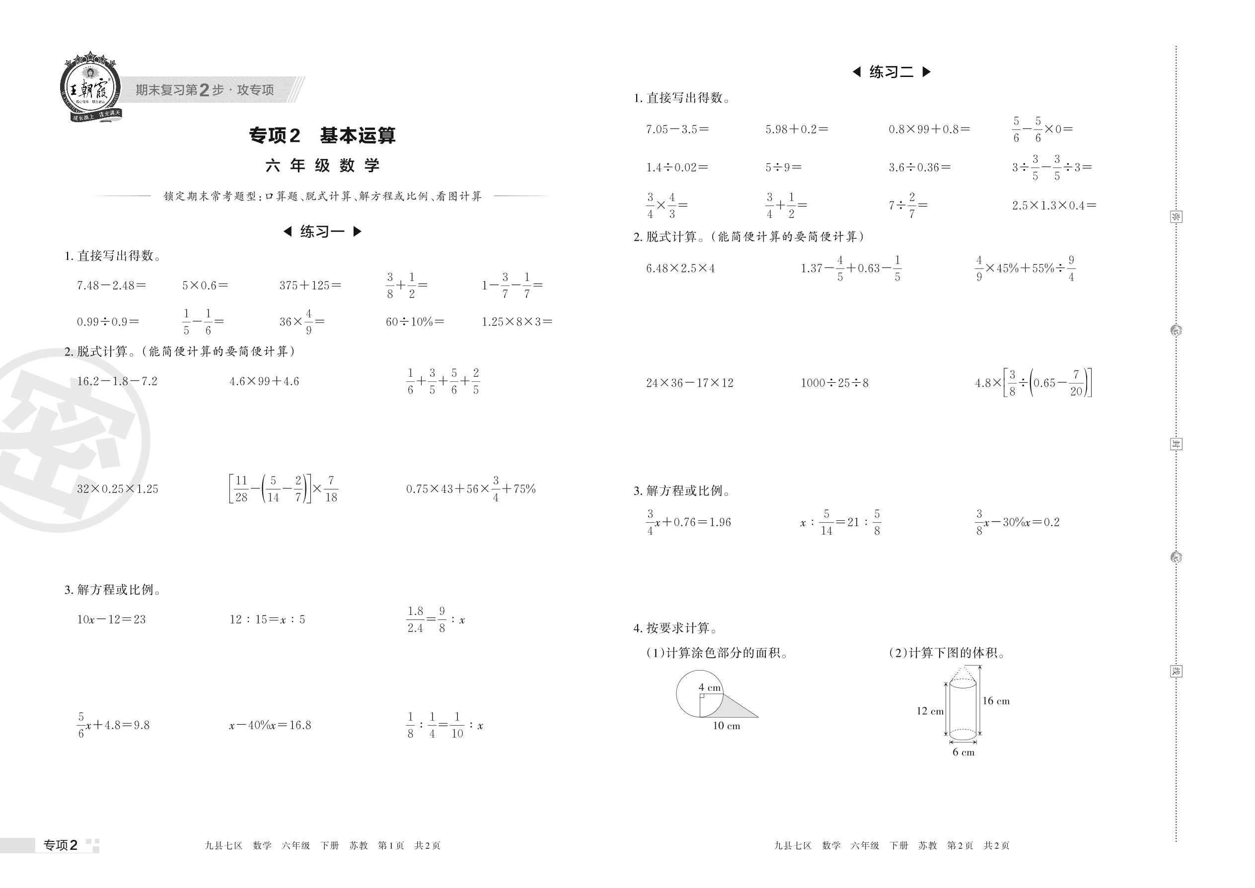 王朝霞期末专项卷——基本运算六年级下册数学(苏教版)_R220407155719043【2】