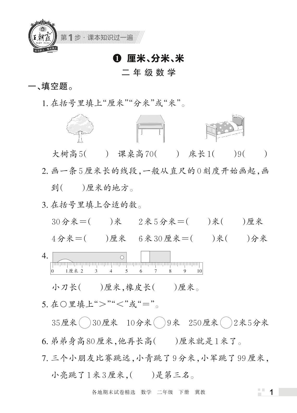 王朝霞期末过课本——1 厘米、分米、米二年级下册数学(冀教版)
