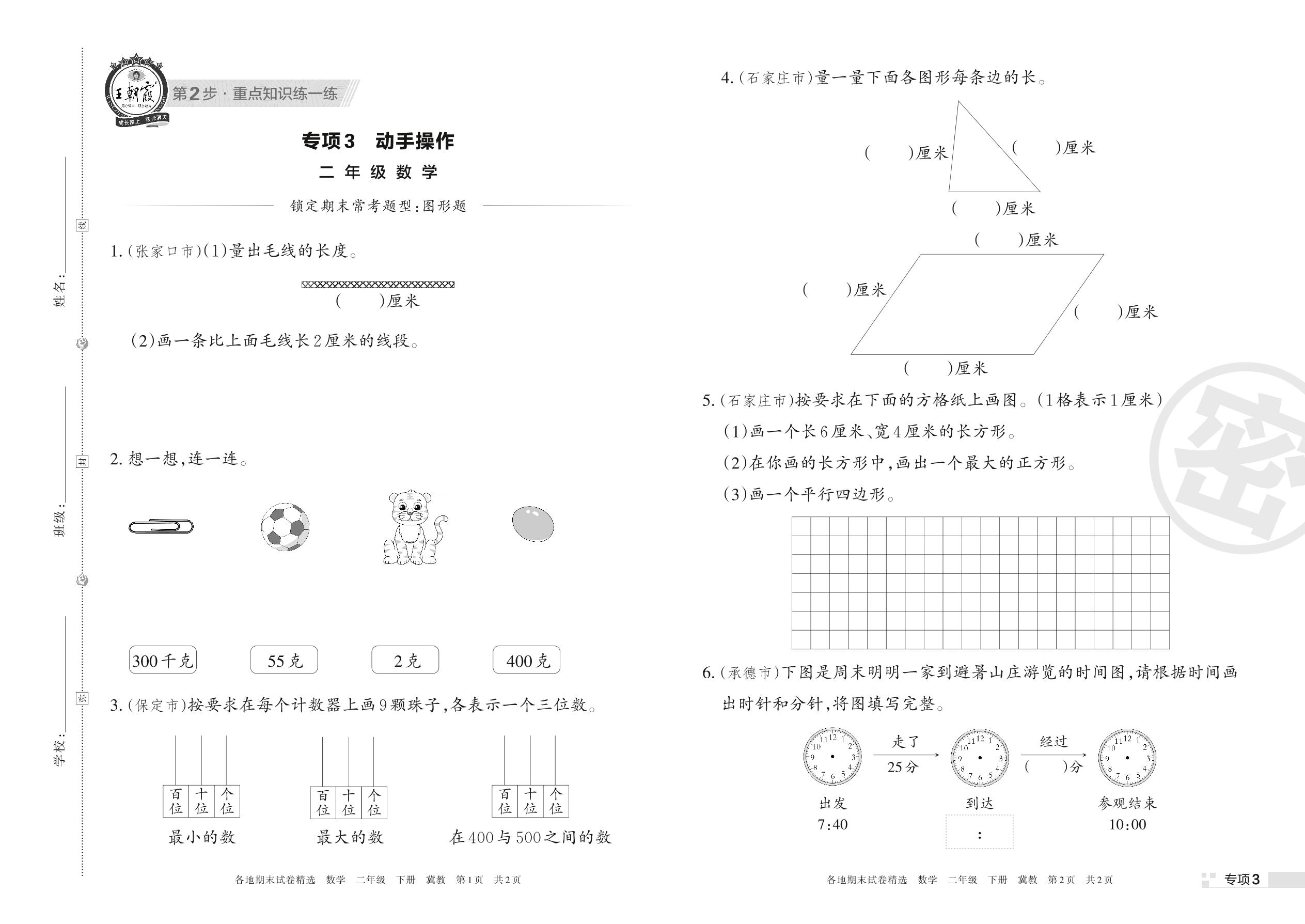 王朝霞期末专项卷——动手操作二年级下册数学(冀教版)【3】