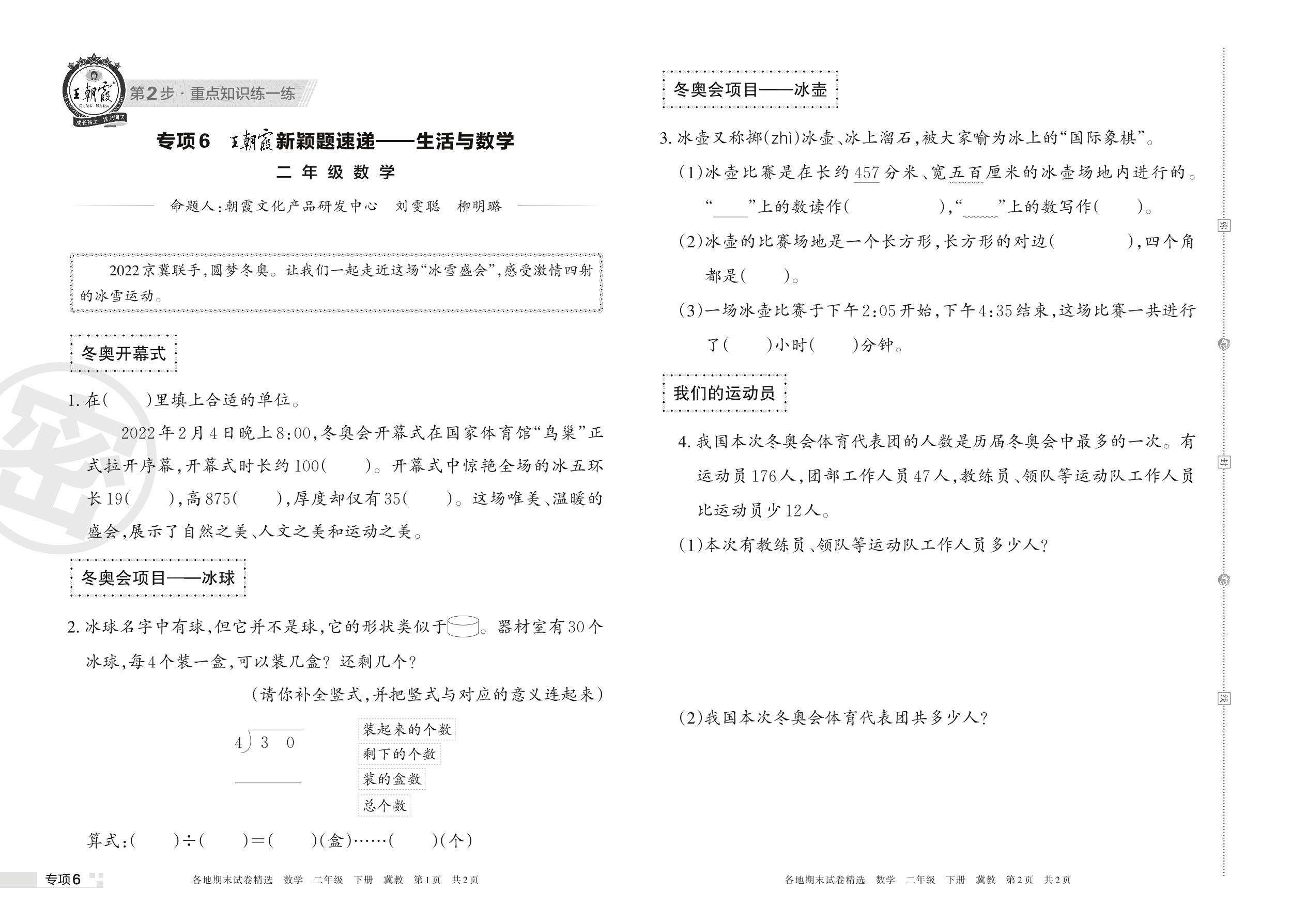 王朝霞期末专项卷——新颖题速递:生活与数学二年级下册数学(冀教版)【6】