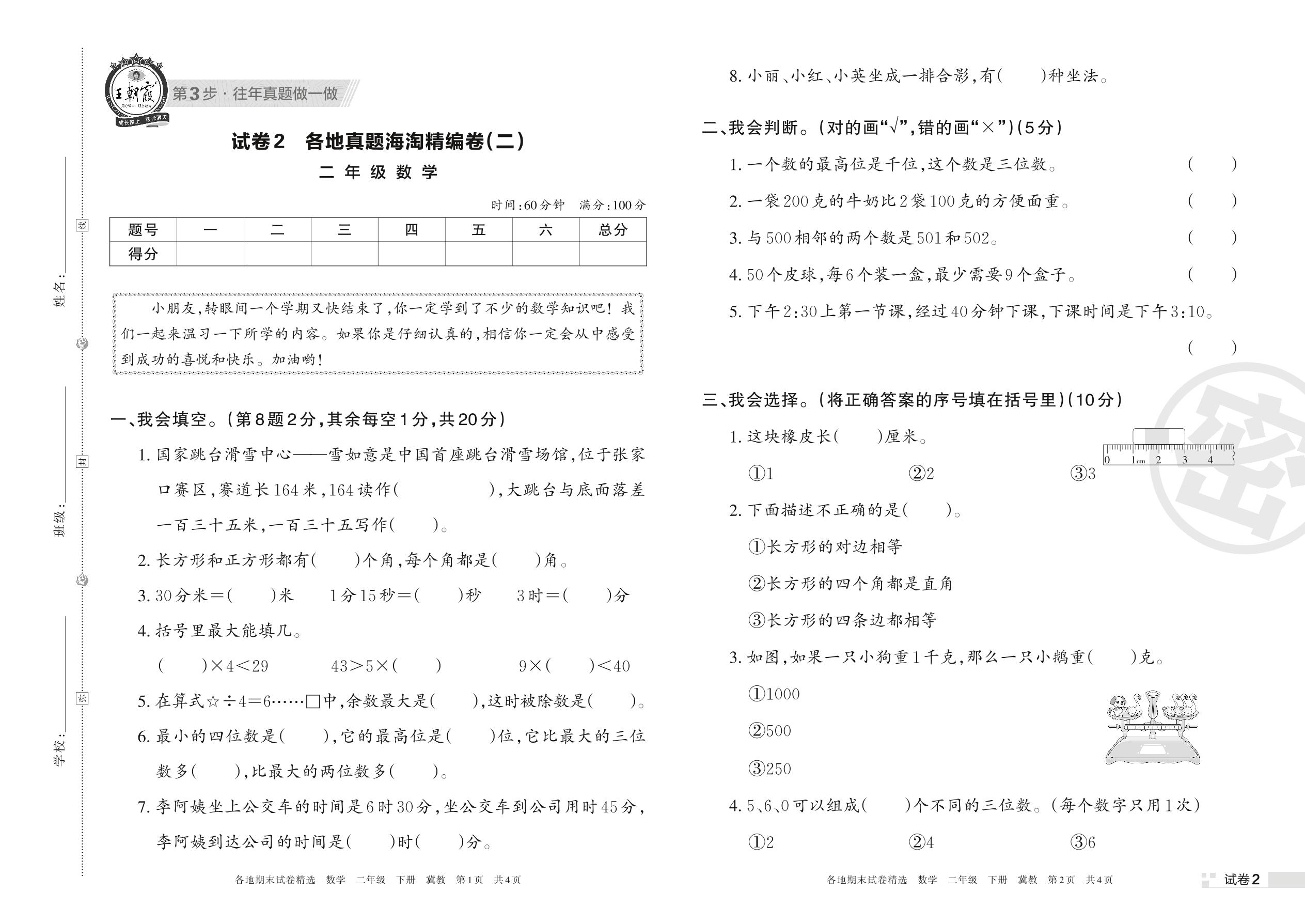 各地真题海淘精编卷(二)二年级下册数学(冀教版)【2】