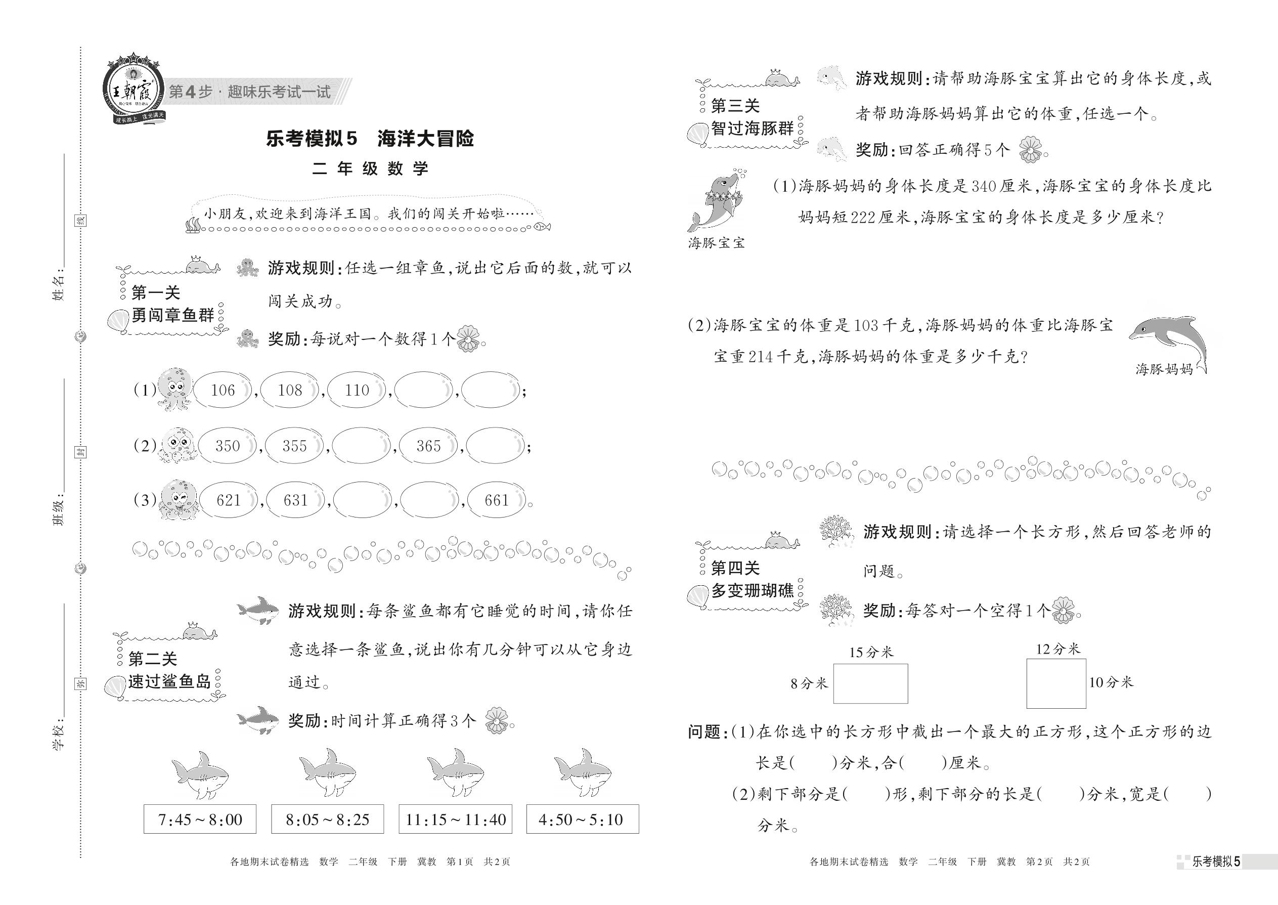 乐考模拟5 海洋大冒险二年级下册数学(冀教版)