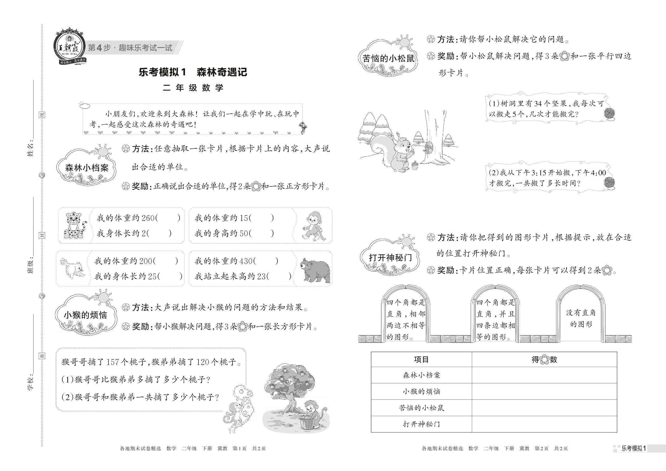 乐考模拟1 森林奇遇记二年级下册数学(冀教版)