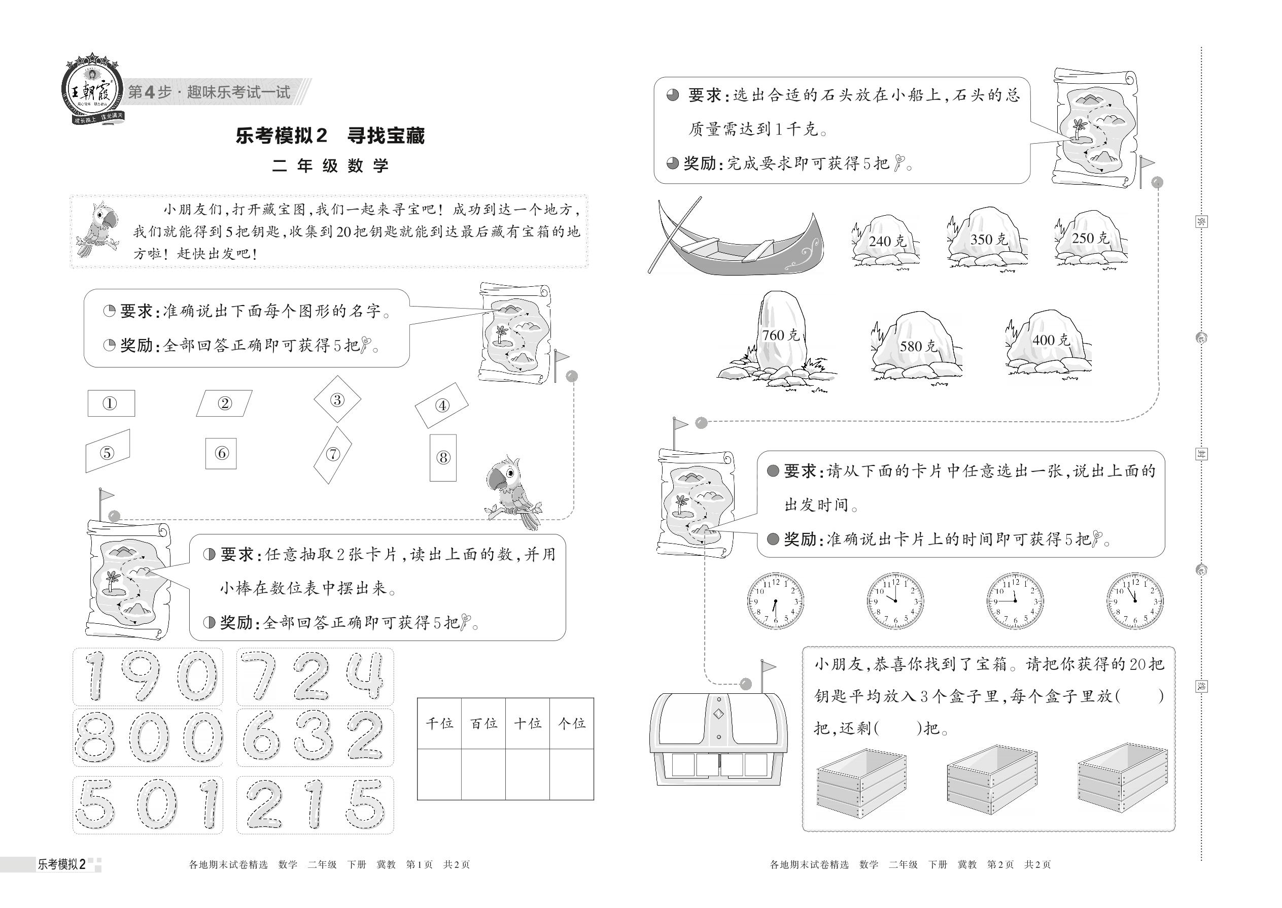 乐考模拟2 寻找宝藏二年级下册数学(冀教版)