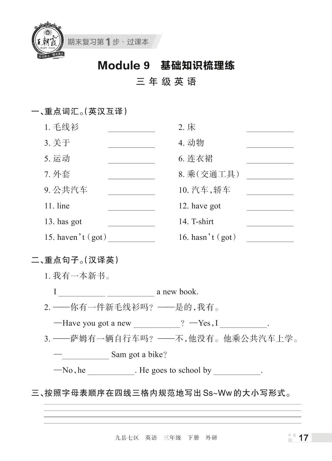 王朝霞期末过课本——Module 9 基础知识梳理练三年级下册英语(外研版)_R220407161439979