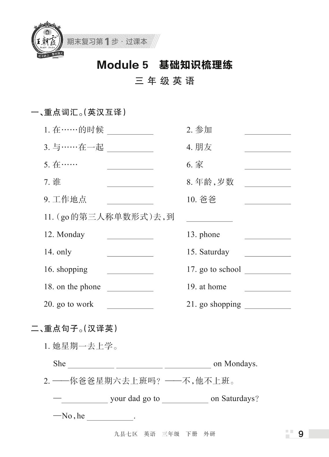 王朝霞期末过课本——Module 5 基础知识梳理练三年级下册英语(外研版)_R220407161439467