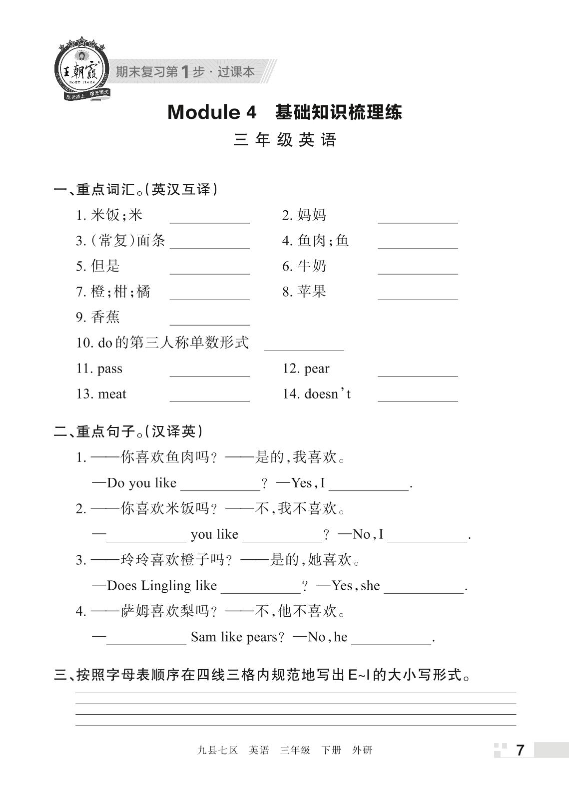 王朝霞期末过课本——Module 4 基础知识梳理练三年级下册英语(外研版)_R220407161439282