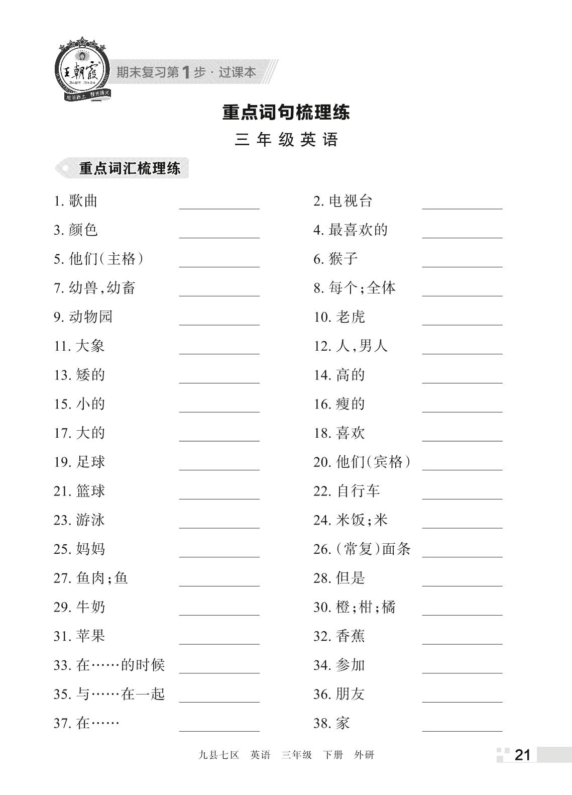 王朝霞期末过课本——重点词句梳理练三年级下册英语(外研版)_R220407161439030