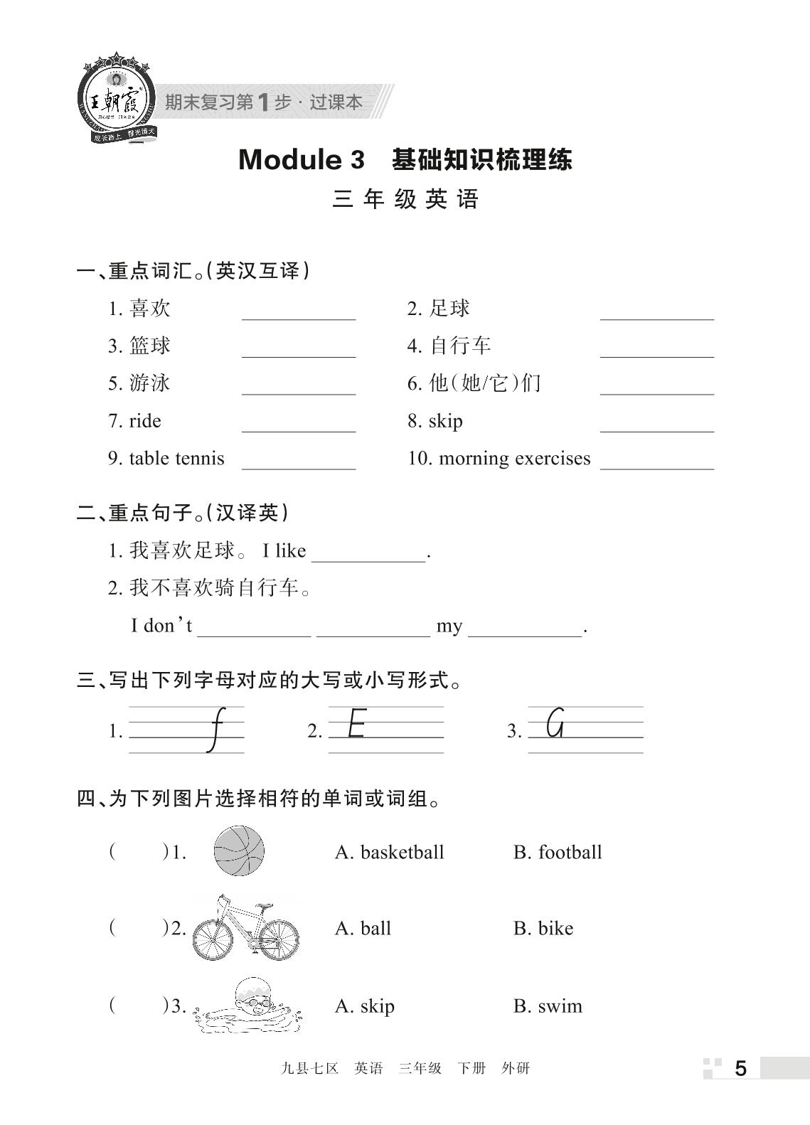 王朝霞期末过课本——Module 3 基础知识梳理练三年级下册英语(外研版)_R220407161439119