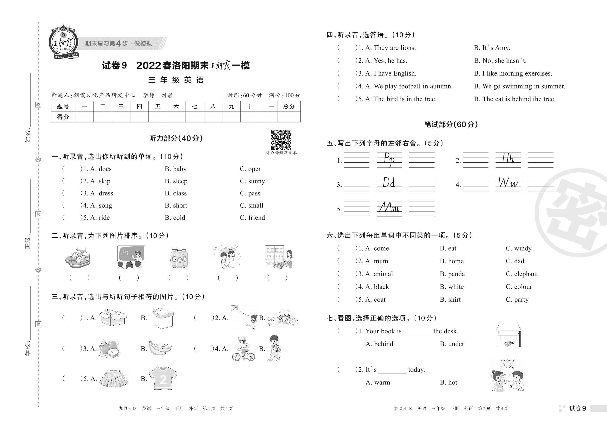 王朝霞期末模拟卷三年级下册英语(外研版)_R220407161441064【9】