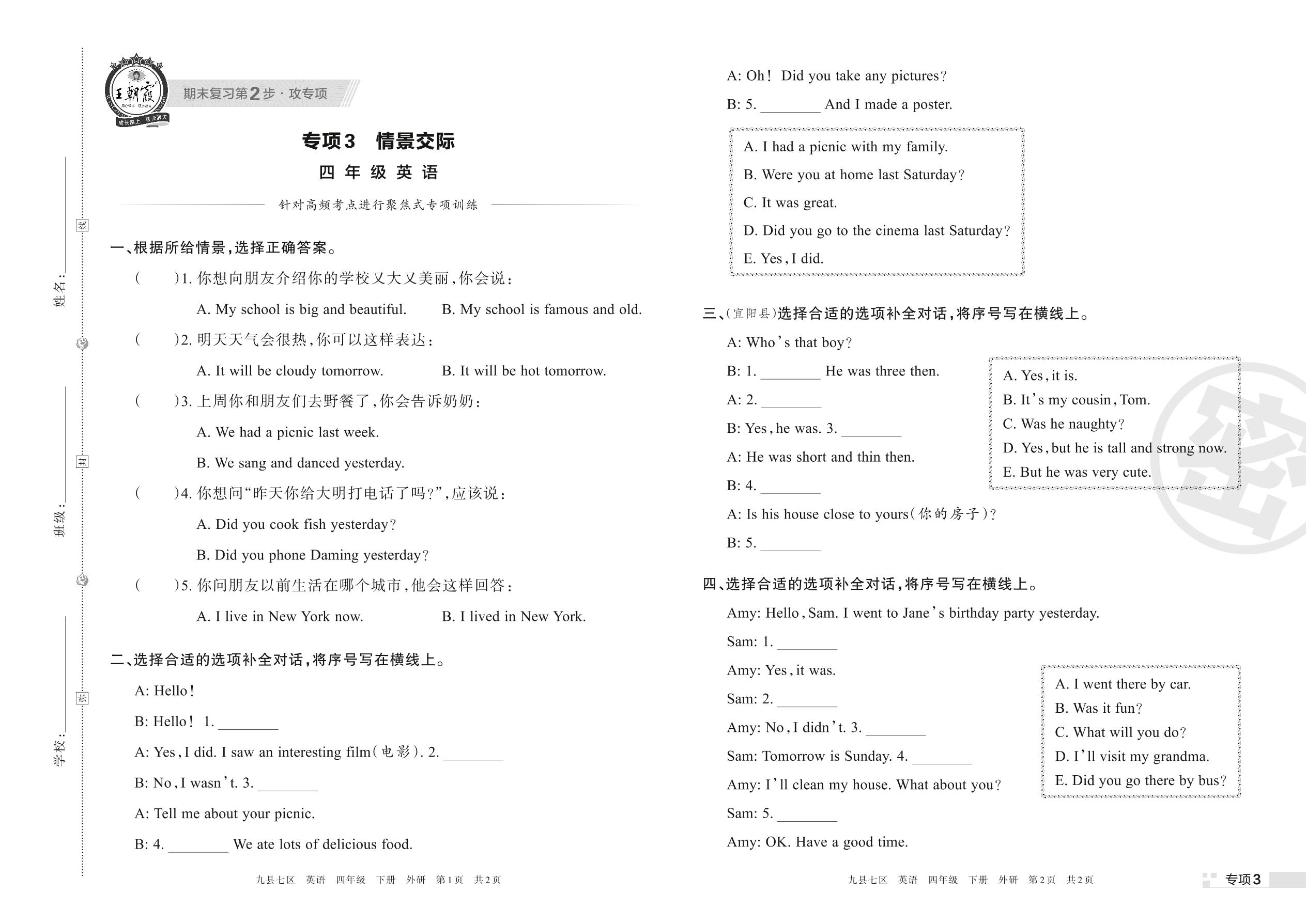 王朝霞期末专项卷——情景交际四年级下册英语(外研版)_R220407164438478【3】
