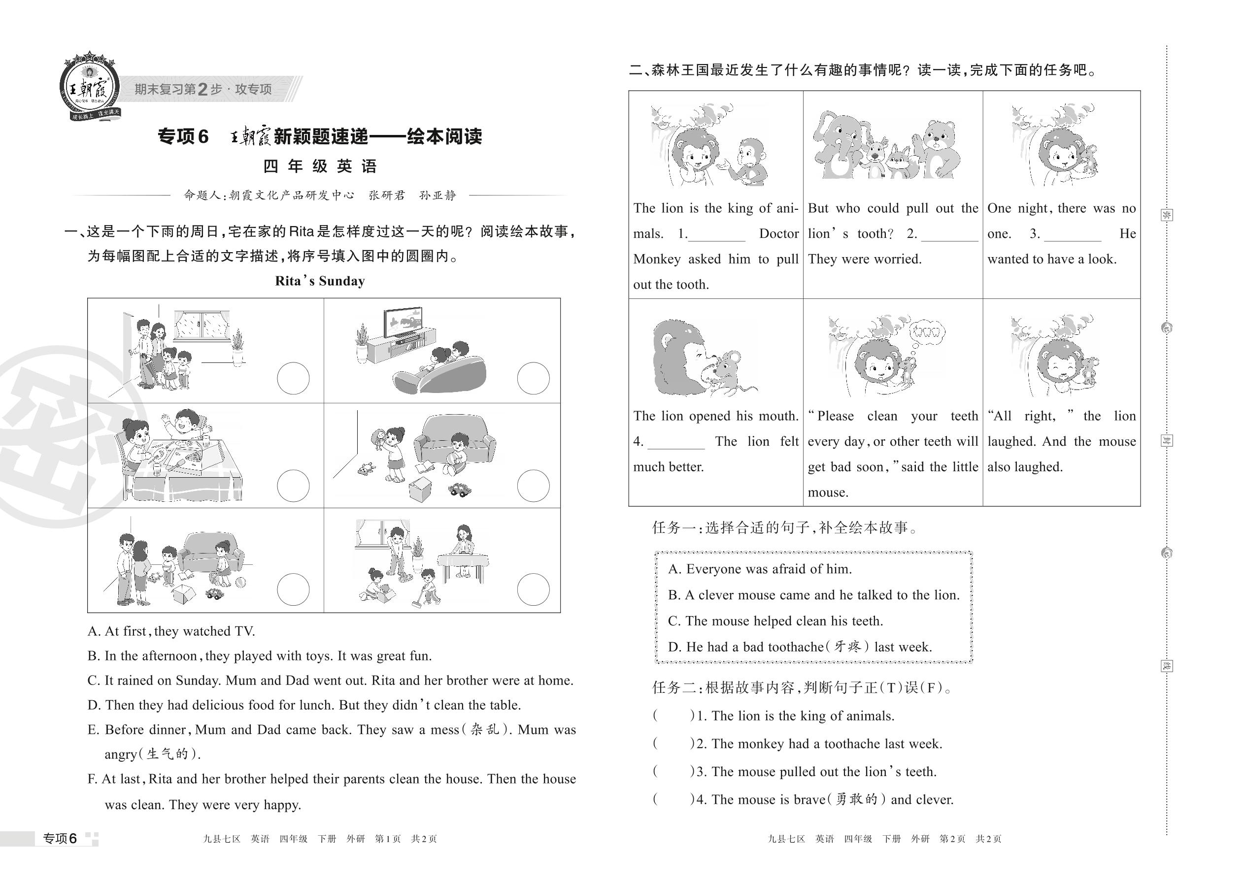 王朝霞期末专项卷——新颖题速递:绘本阅读四年级下册英语(外研版)【6】