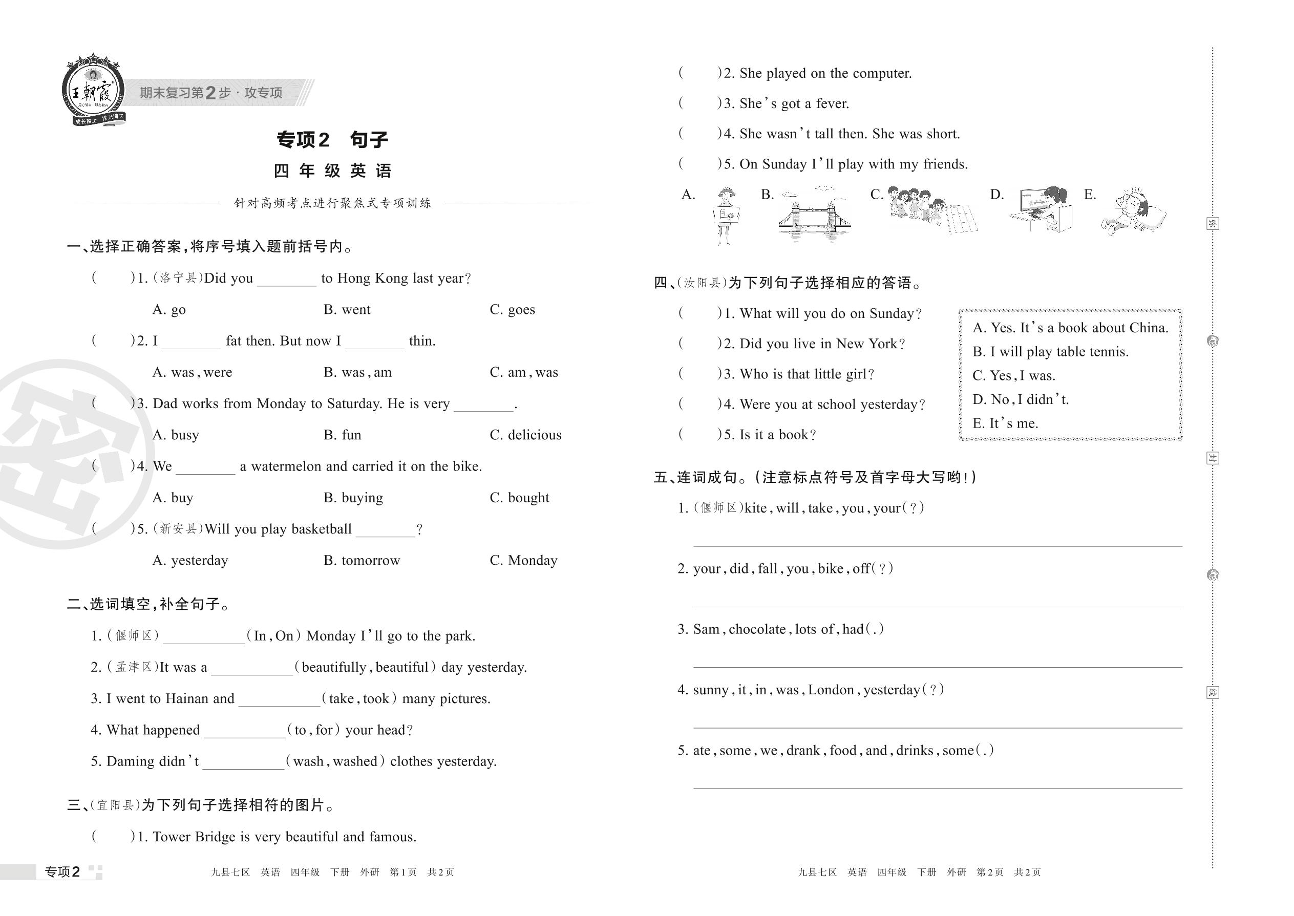 王朝霞期末专项卷——句子四年级下册英语(外研版)_R220407164438690【2】