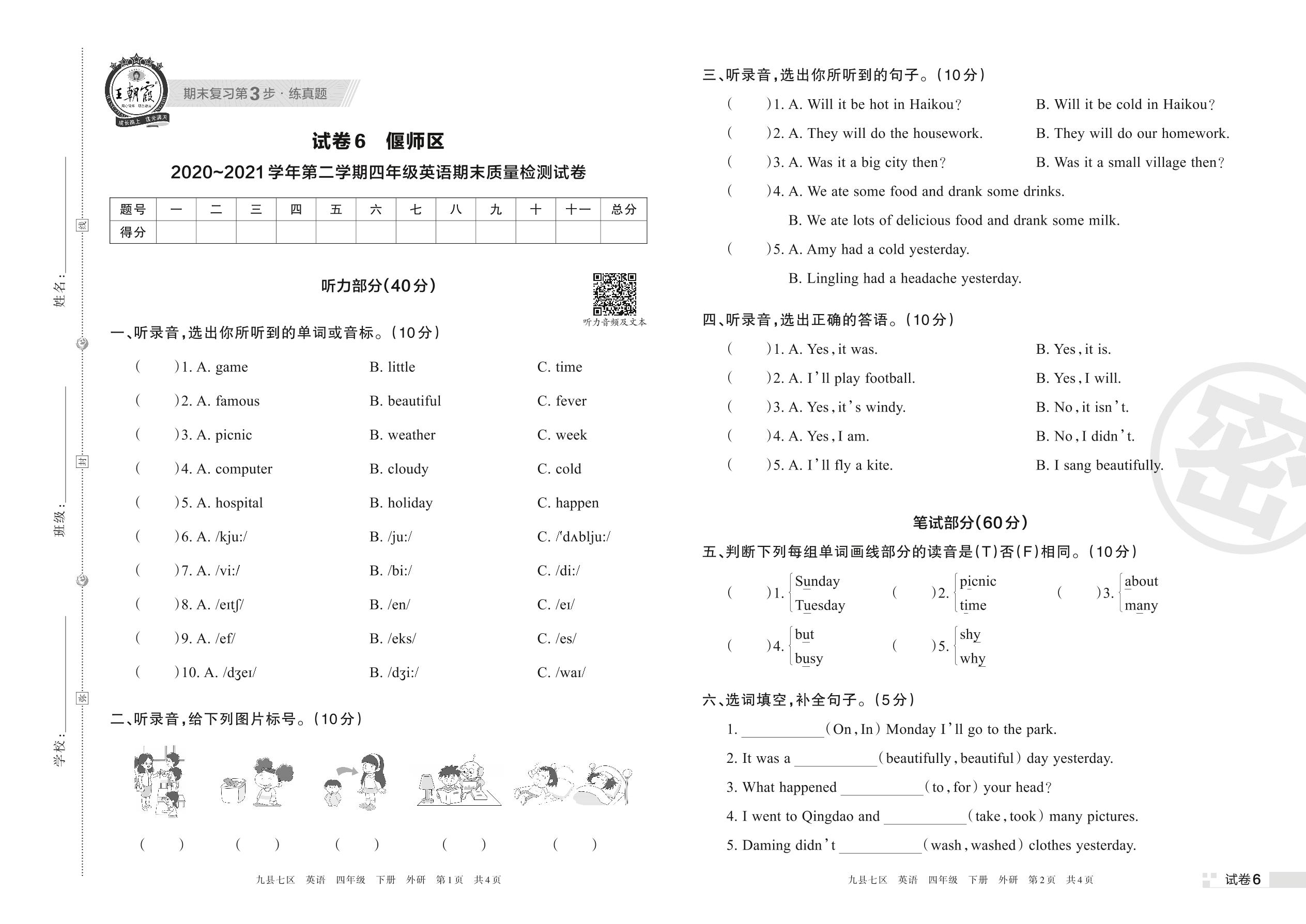 偃师区2020~2021学年第二学期四年级英语期末质量检测试卷(外研版)【6】