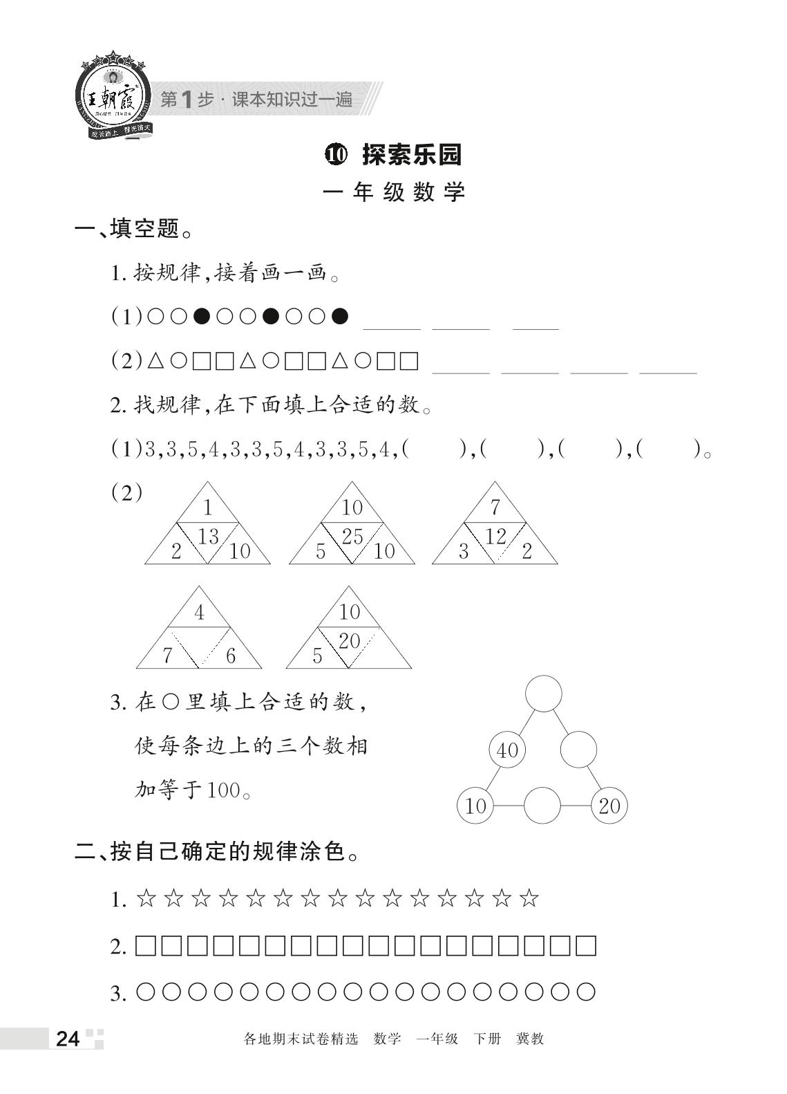 王朝霞期末过课本——10 探索乐园一年级下册数学(冀教版)