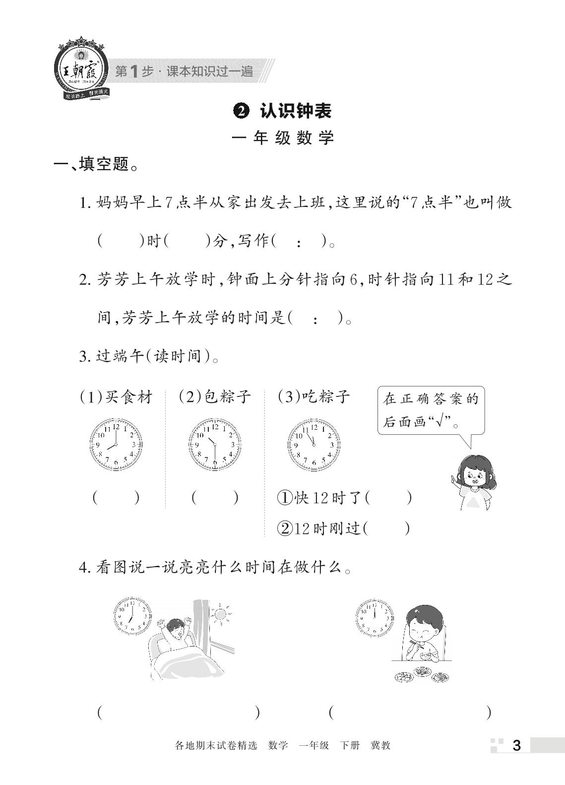 王朝霞期末过课本——2 认识钟表一年级下册数学(冀教版)