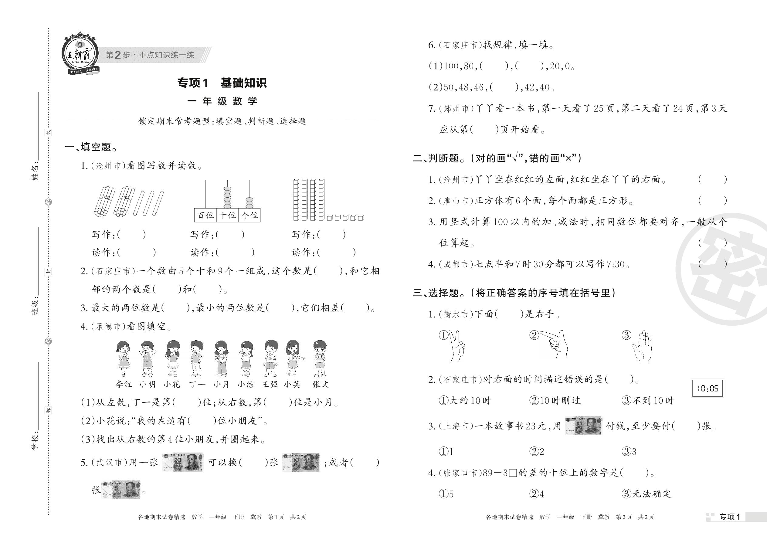 王朝霞期末专项卷——基础知识一年级下册数学(冀教版)【1】4156156156156