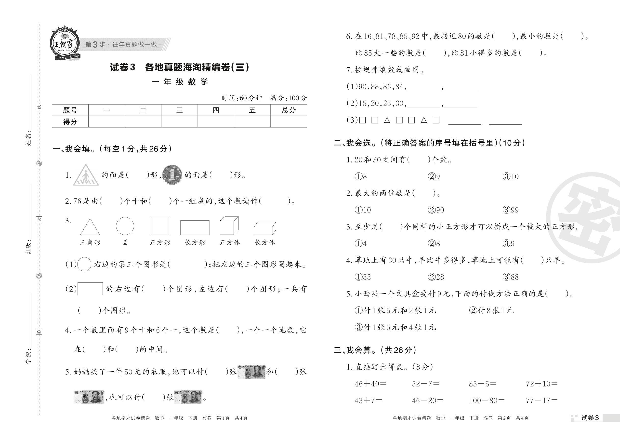 各地真题海淘精编卷(三)一年级下册数学(冀教版)【3】