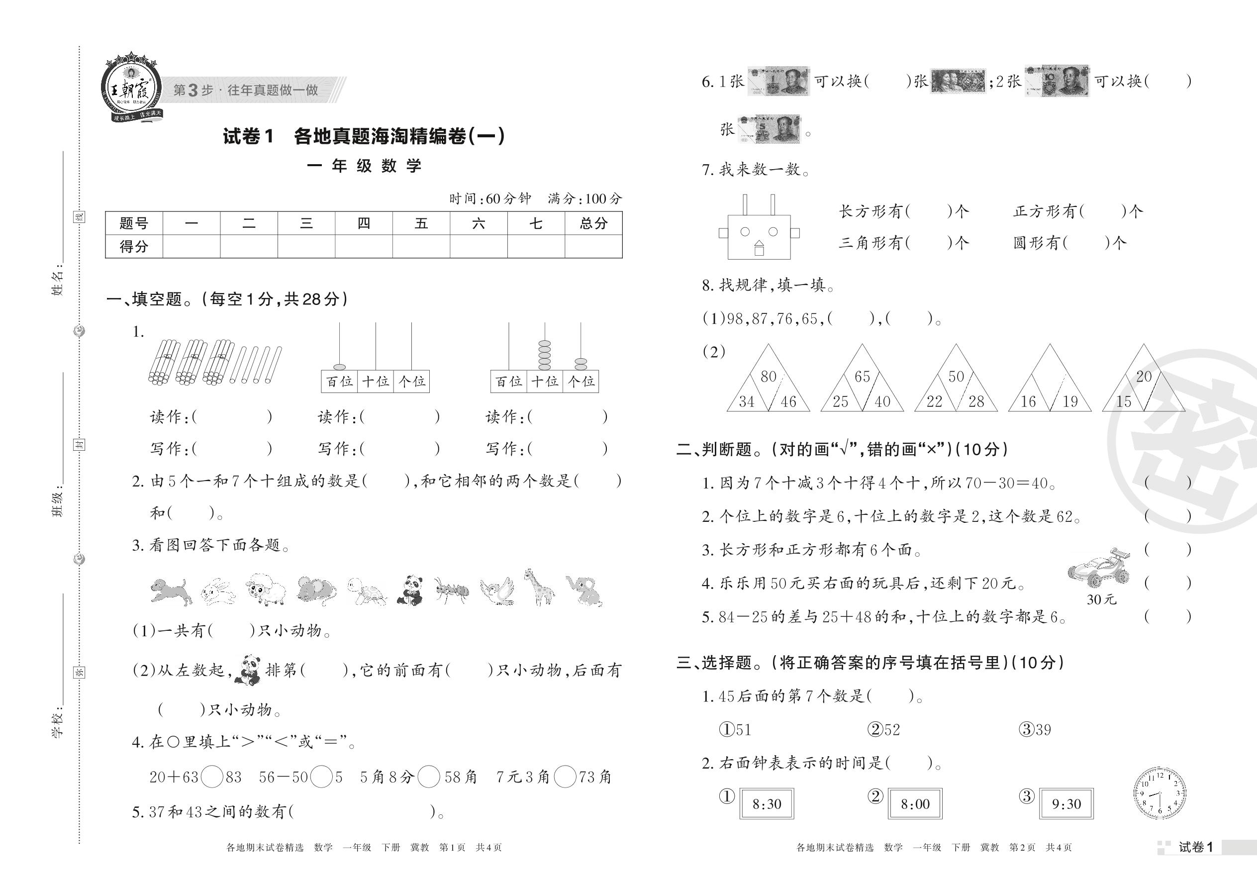 各地真题海淘精编卷(一)一年级下册数学(冀教版)【1】