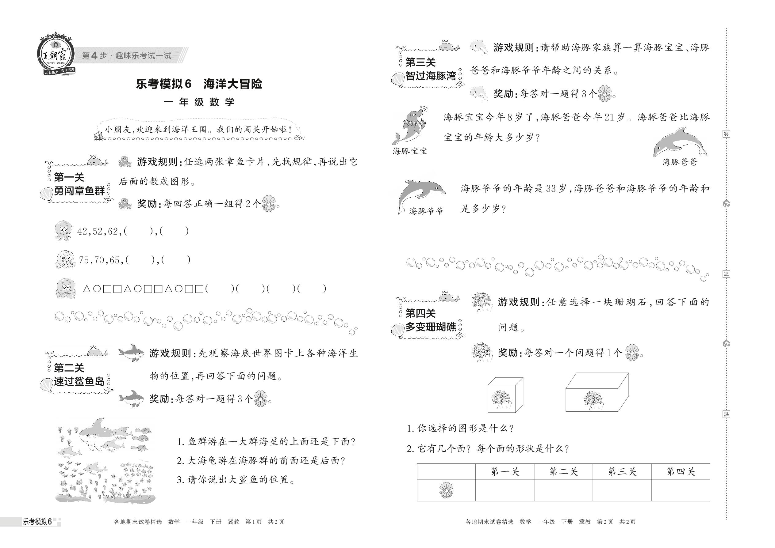 乐考模拟6 海洋大冒险一年级下册数学(冀教版)