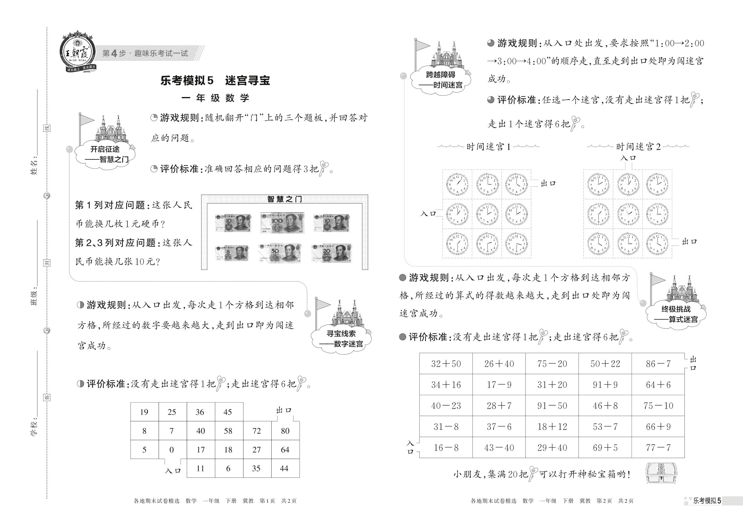 乐考模拟5 迷宫寻宝一年级下册数学(冀教版)