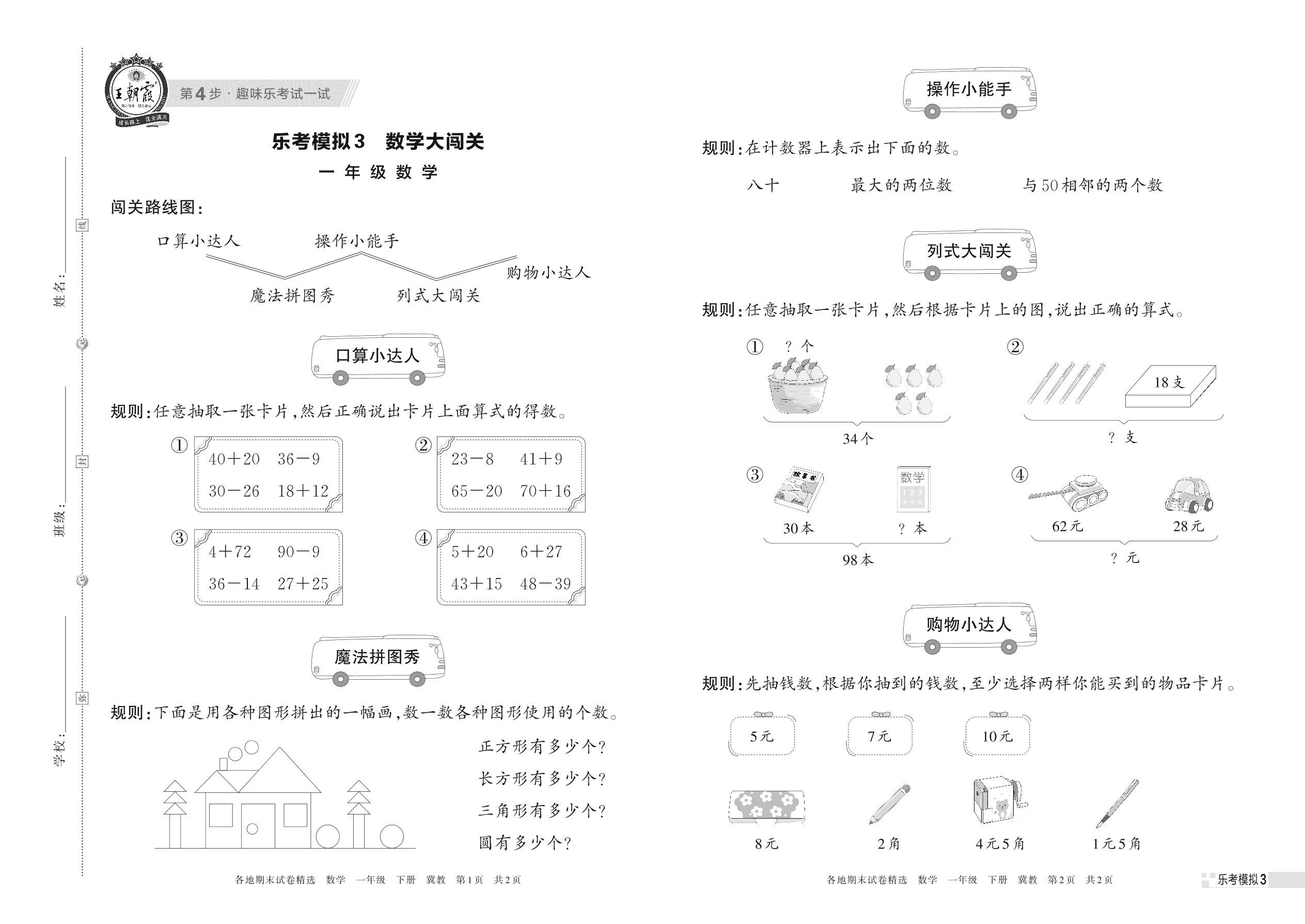 乐考模拟3 数学大闯关一年级下册数学(冀教版)