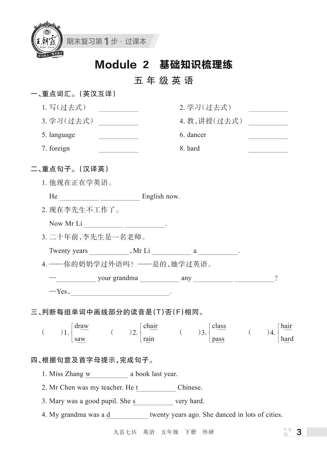 王朝霞期末过课本——Module 2 基础知识梳理练五年级下册英语(外研版)_R220407171903904