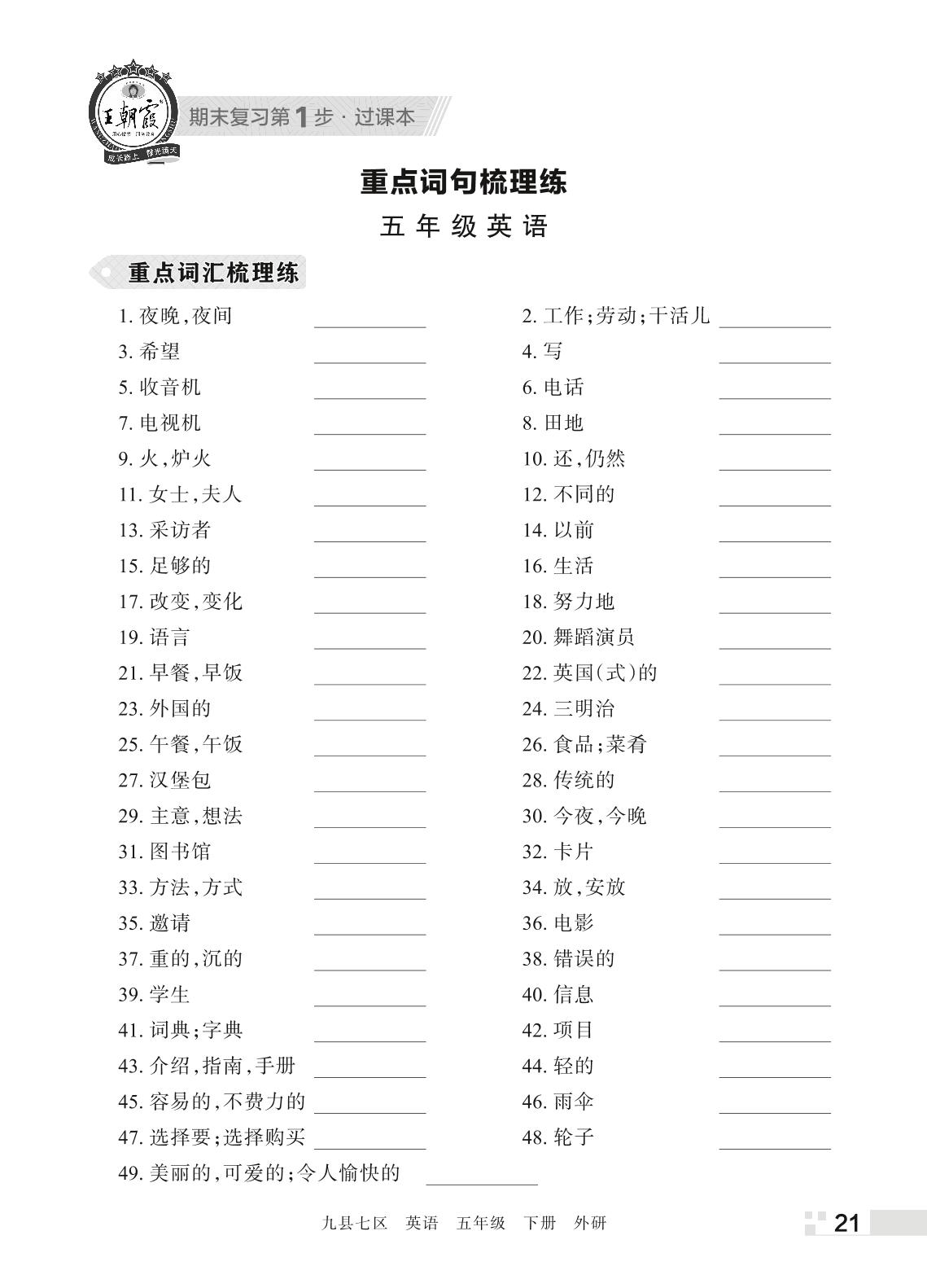 王朝霞期末过课本——重点词句梳理练五年级下册英语(外研版)_R220407171903789